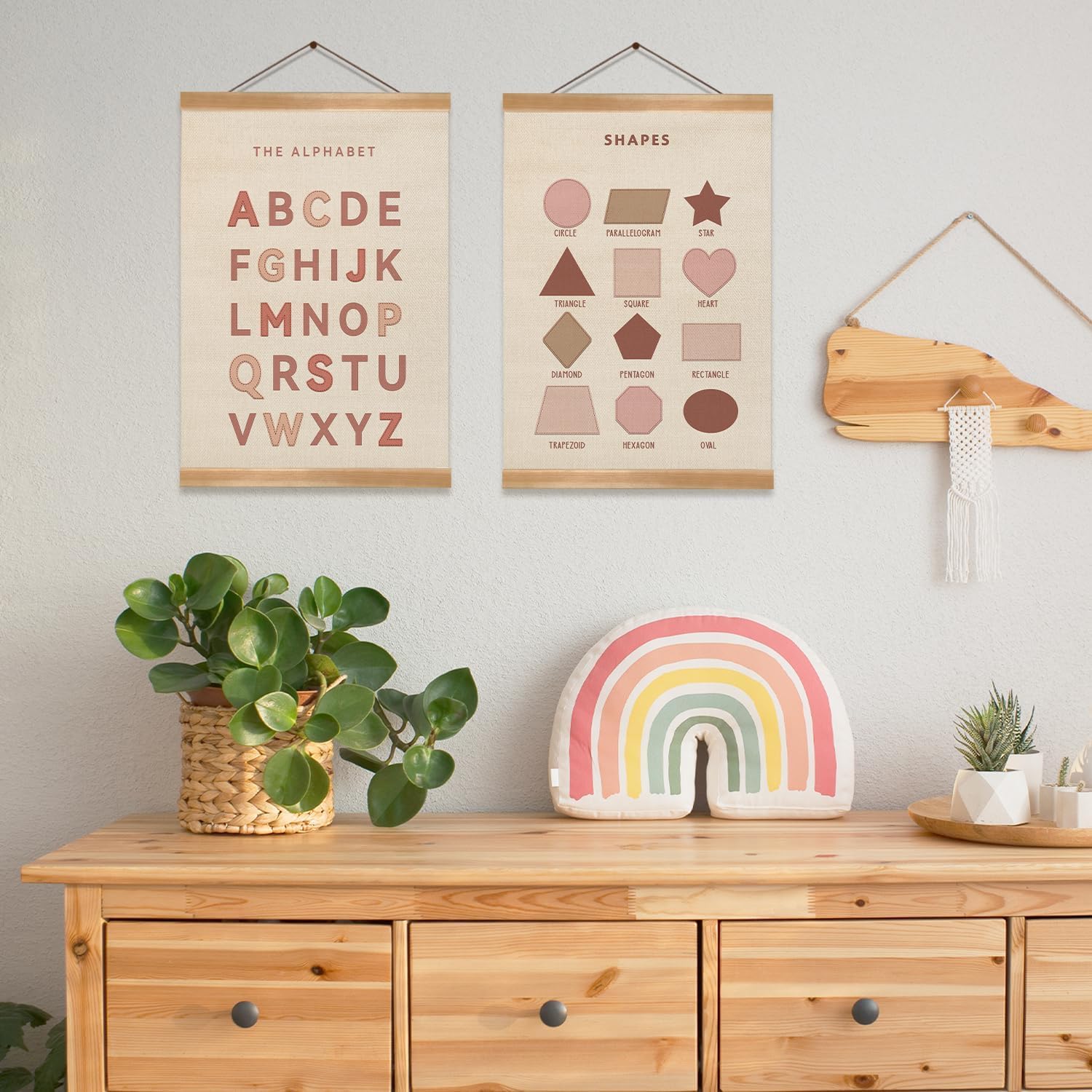 ZTGDA Alphabet Shapes Poster Set of 2, ABC Posters for Toddlers Decor, Shapes Alphabet Learning Poster Hanger Frame Wall Decor for Classroom Nursery Kids Room Playroom Preschool Decor