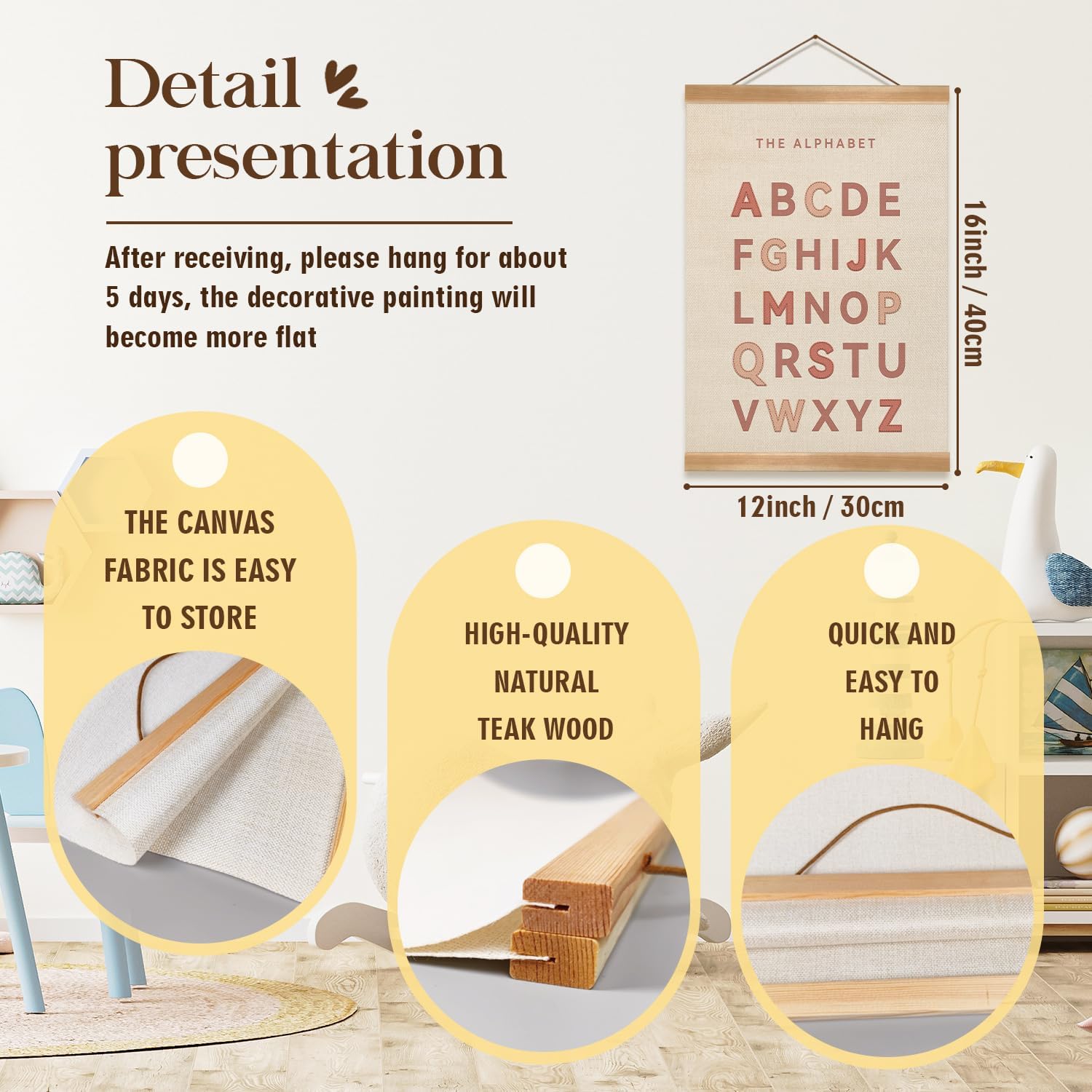 - Alphabet numbers poster hanger frame, nursery wall decor, ABC banner poster wall art, alphabet banner wall hanging decor for toddler playroom nursery, this set combines vibrant colors with an easy-to-read layout. It's designed to spark curiosity and support early learning for children