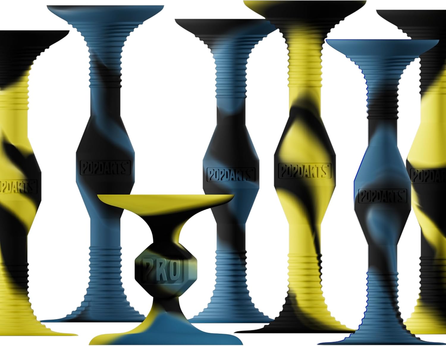 - WHAT’S INCLUDED IN A SET? 3 Black/Blue Swirled Popdarts | 3 Black/Yellow Swirled Popdarts | 1 Black/Yellow/Blue Target Marker | 4 Mesh Carrying Bag with rules printed right on the bag