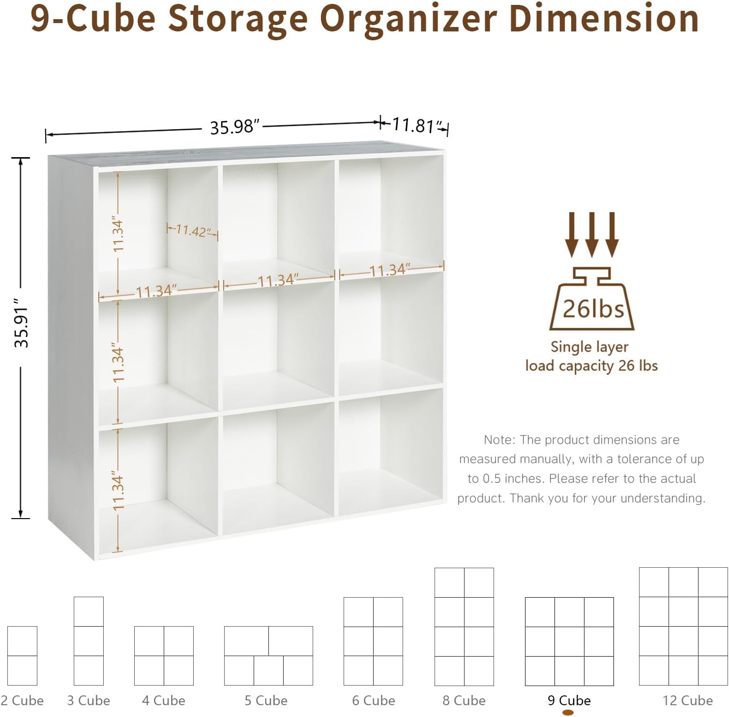 - Size : 9-Cube 35.98L*11.81W*35.91H