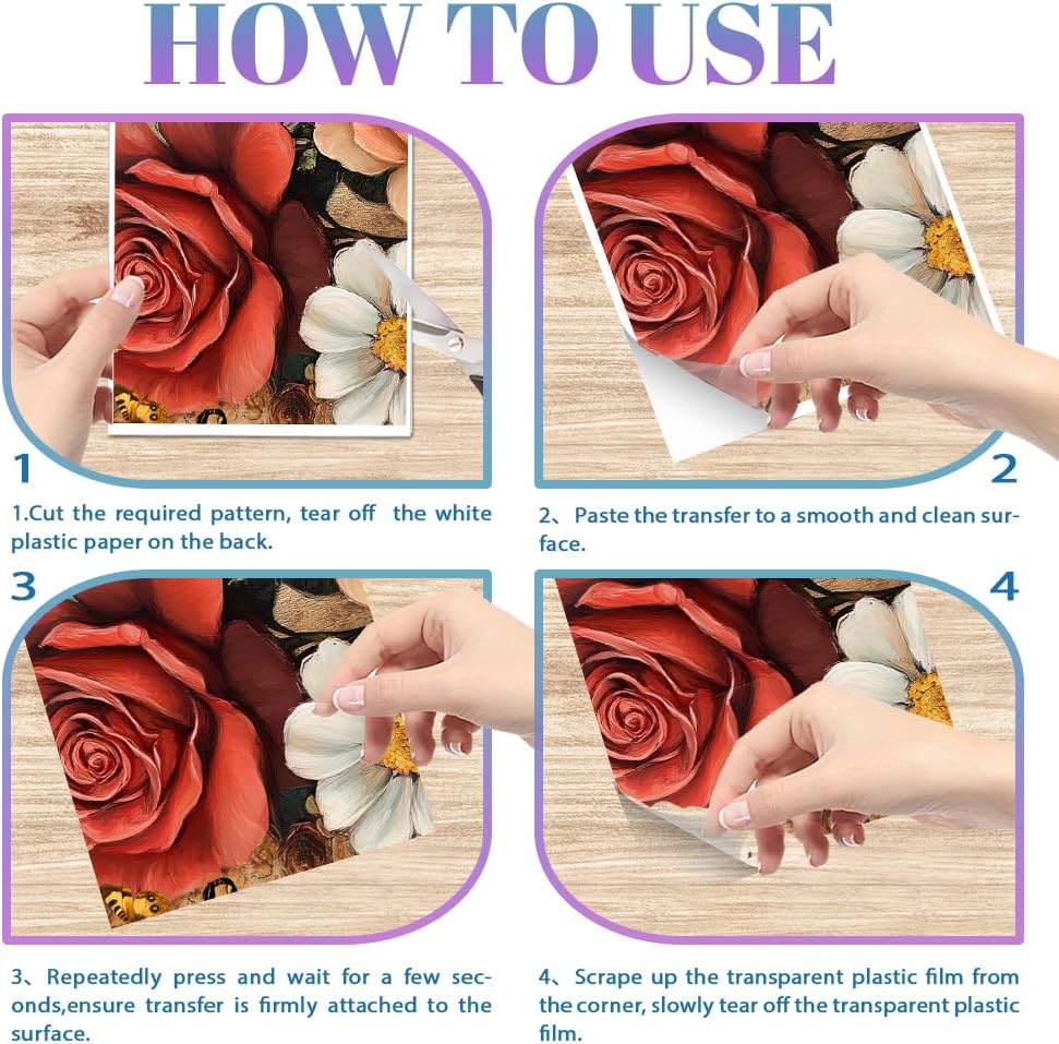 - Packaging Includes: 4 sheets of vintage flowers rub on transfer stickers. These transfers can be used individually or combined, offering a variety of patterns to suit any space.