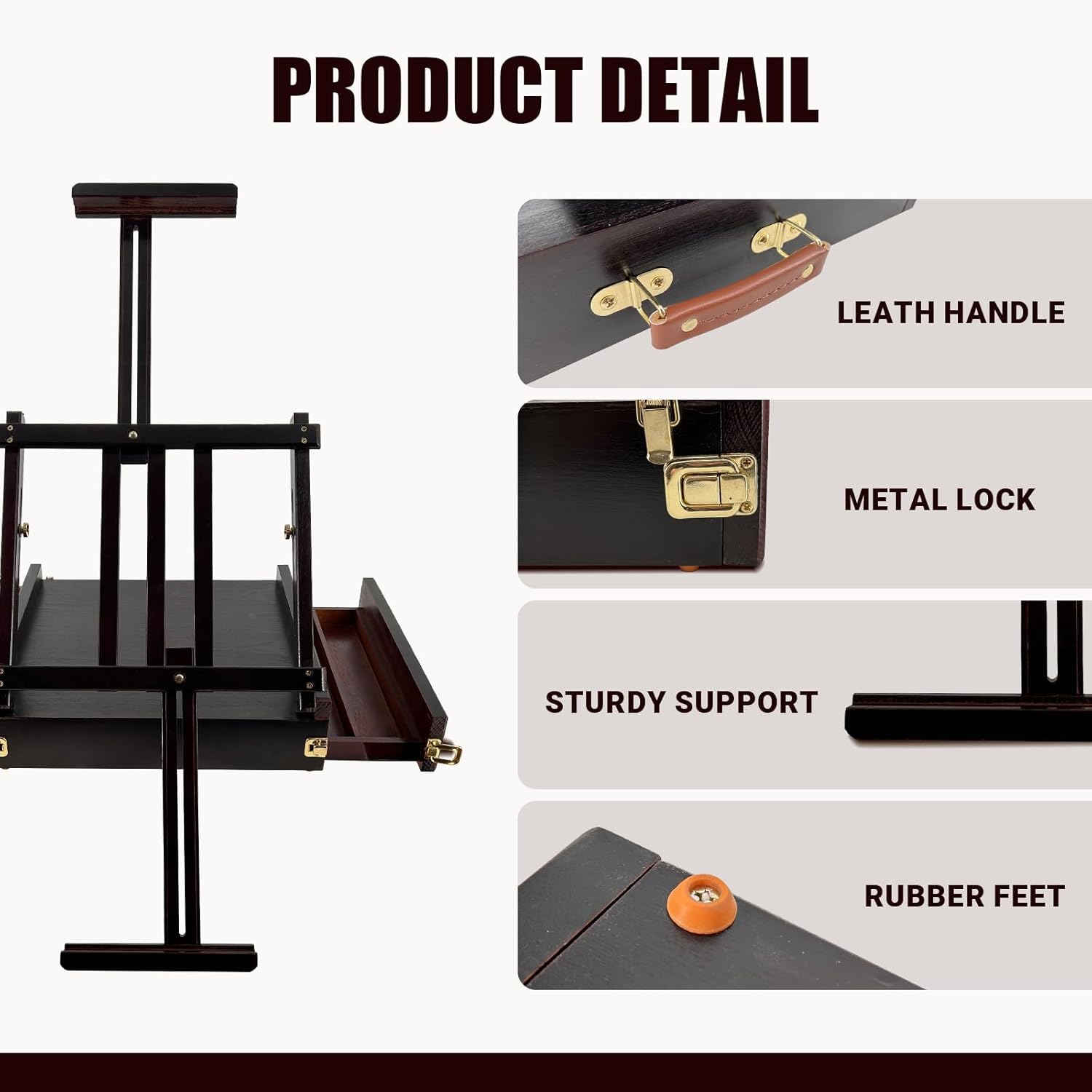 - Reliable and Sturdy: This sketchbox table top easel is made of premium beech wood from German without any burr. All hardware is rust-proof, letting you safely transport artwork made out in the field. We provide 2 colors, Nauture & Dark Walnut.
