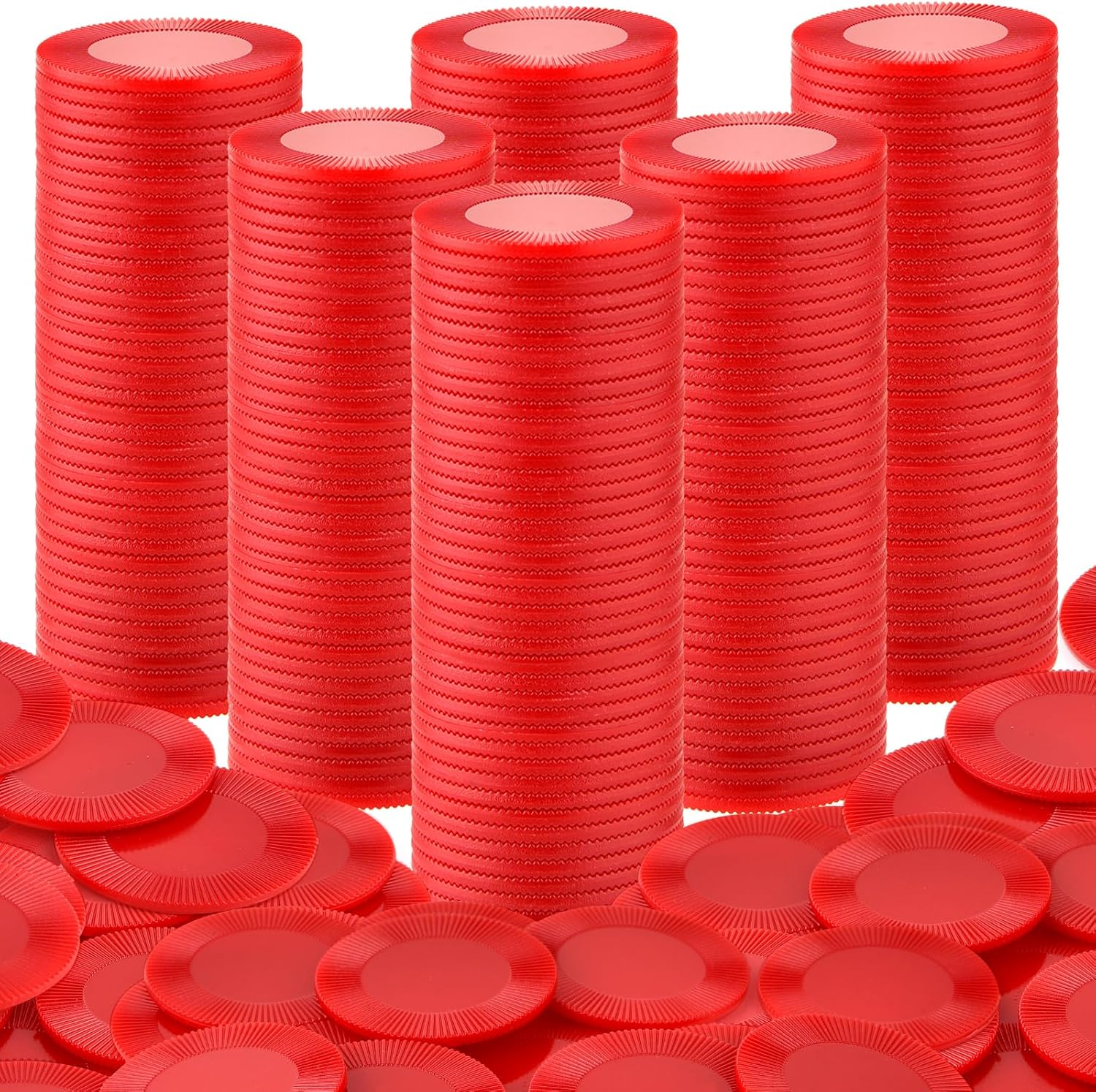 Coopay 500 Pieces Plastic Poker Chips, 1 Inch Bingo Chips Bulk Learning Counters Disks Poker Card Game, Counting Markers for Math Practice, Game Tokens and Teaching Rewards, 25 mm (Red)