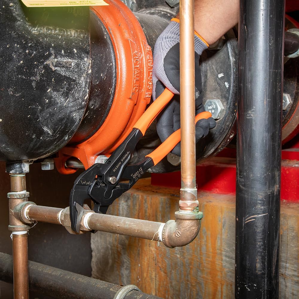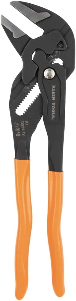 Klein Tools D53112 Compact Plier Wrench, High Leverage Multi-Use Adjustable Plier Wrench with Smooth Jaws, 12-Inch