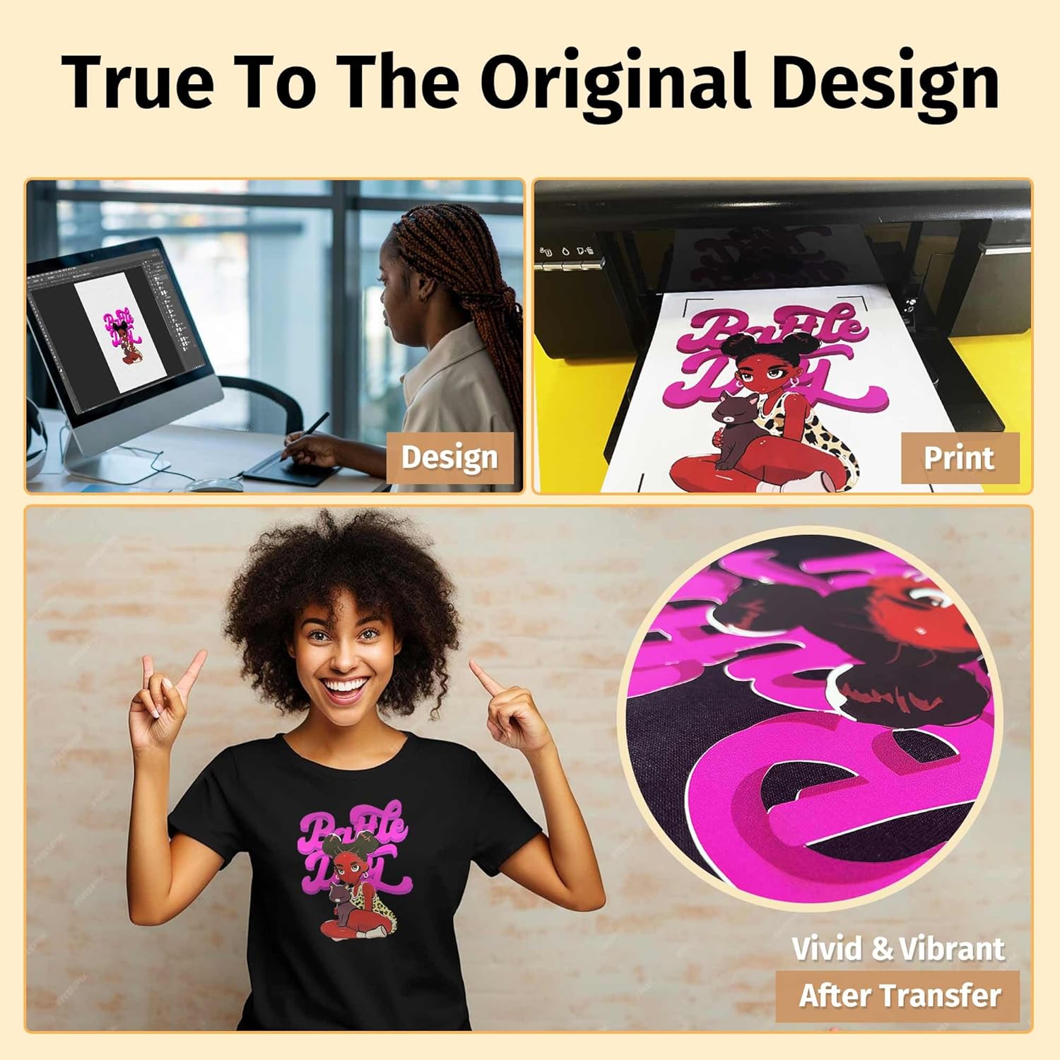 - 💕SAVE MONEY &SAVE TIME: PHTV provides a perfect solution to the problem that traditional HTV need to many HTV rolls of different colors to complete a design. Now you only need 1 sheet PHTV to complete your personalized full-color design, which greatly saves your time and money costs. The transfer process is simpler and more efficient. Small businesses choice.