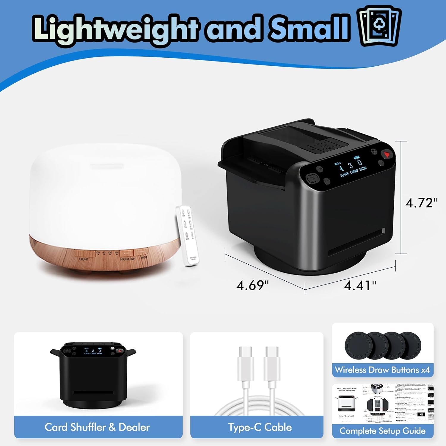 - โ ๐๐จ๐ซ๐ญ๐๐๐ฅ๐ ๐๐ง๐ ๐๐จ๐ฆ๐ฉ๐๐๐ญ โ ๐๐๐ค๐ ๐ญ๐ก๐ ๐ ๐ฎ๐ง ๐๐ง๐ฒ๐ฐ๐ก๐๐ซ๐: This casino card shuffler and dealer machine redefines convenience with its ultra-slim, lightweight designโsmall enough to slip into a backpack or drawer, yet powerful enough to handle any game. From family game nights to outdoor camping adventures, enjoy card games without bulky equipment.