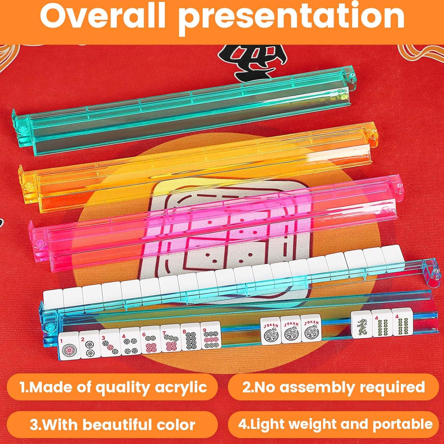 Mahjong Racks with Pushers,4 Colors Acrylic American Majiang Tile Racks,Imports Modern Mahjong Racks with Built-in Pushers- Set of 4