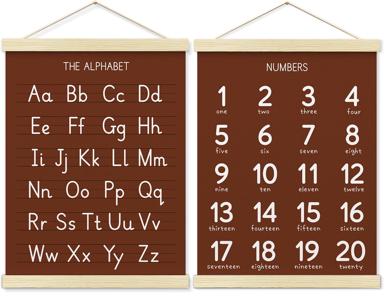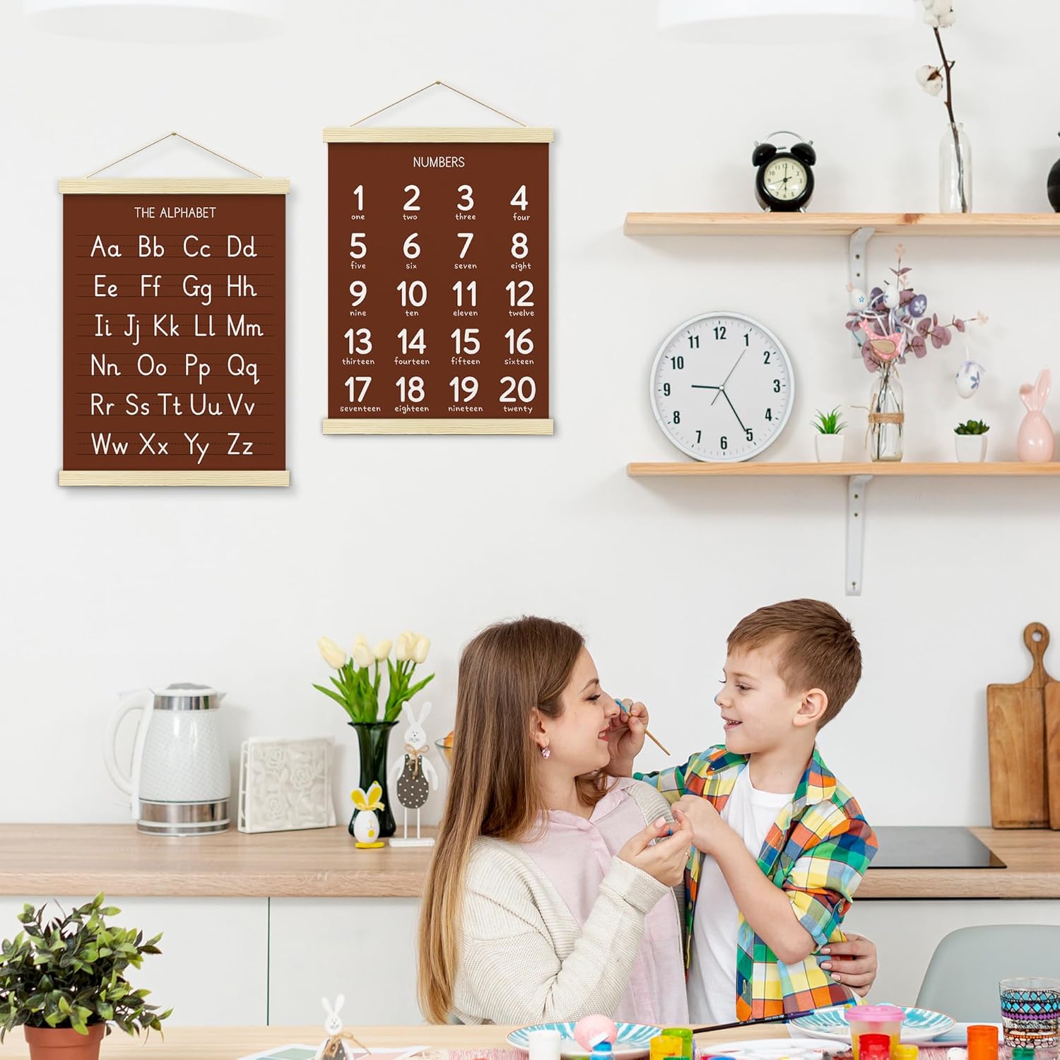- Product Dimensions: Versatile 2 pieces per set 12 x 25 inches, alphabet banner a fun and toddler educational posters piece that features a canvas scroll with colorful ABC poster and numbers and wooden frames.