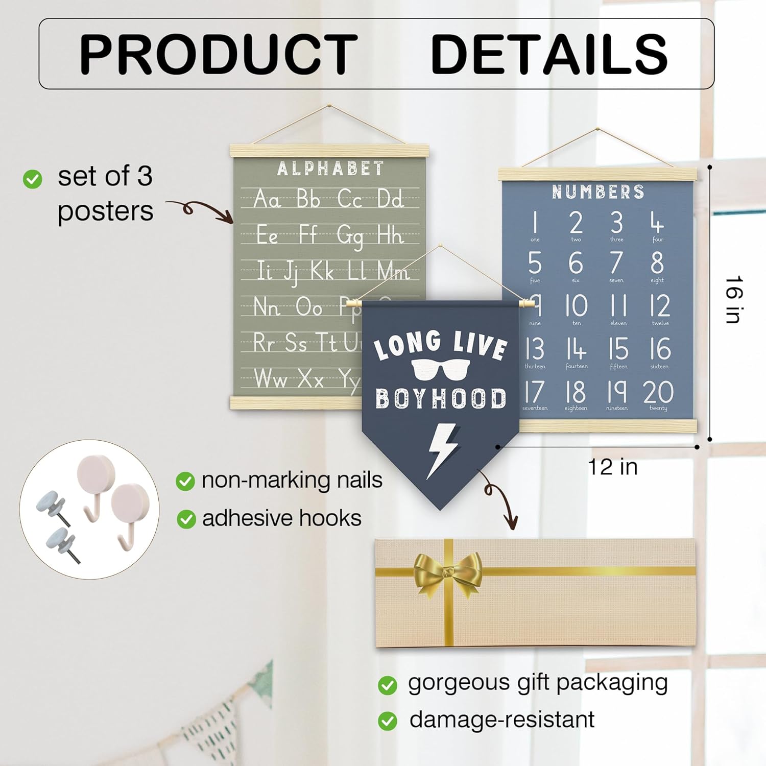 - Perfect Educational Gift: Alphabet poster for toddlers a great gift for baby showers, birthdays, and holidays. ABC posters for classroom wall are interesting and novel. These educational posters come with twine for effortless hanging, ready to hang in nurseries, kids' rooms, playroom decor, classrooms, and daycare centers. Create an engaging learning environment wherever needed. Kids learning posters are perfect for toddlers, preschoolers, and homeschooling environments.