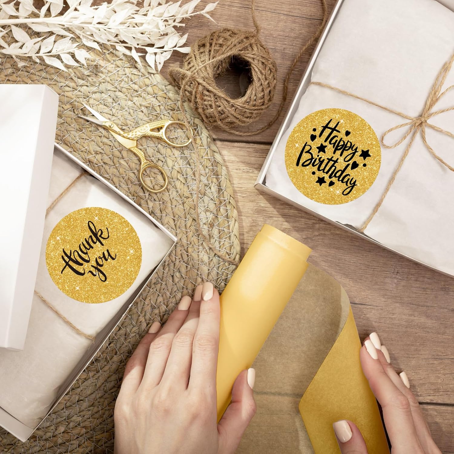 2" Holographic Thermal Label Stickers, Round Direct Thermal Label Stickers, Glitter Thermal Printer Sticker Labels for Gift Wrapping, Self-Adhesive Custom Logo Design- Glitter Gold