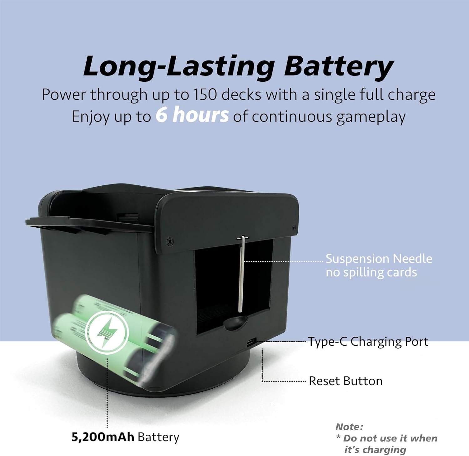 - Quiet Operation: Equipped with a low-noise motor, it ensures a peaceful gaming environment; You can enjoy long game sessions without the annoying noise that some other shufflers and dealers produce