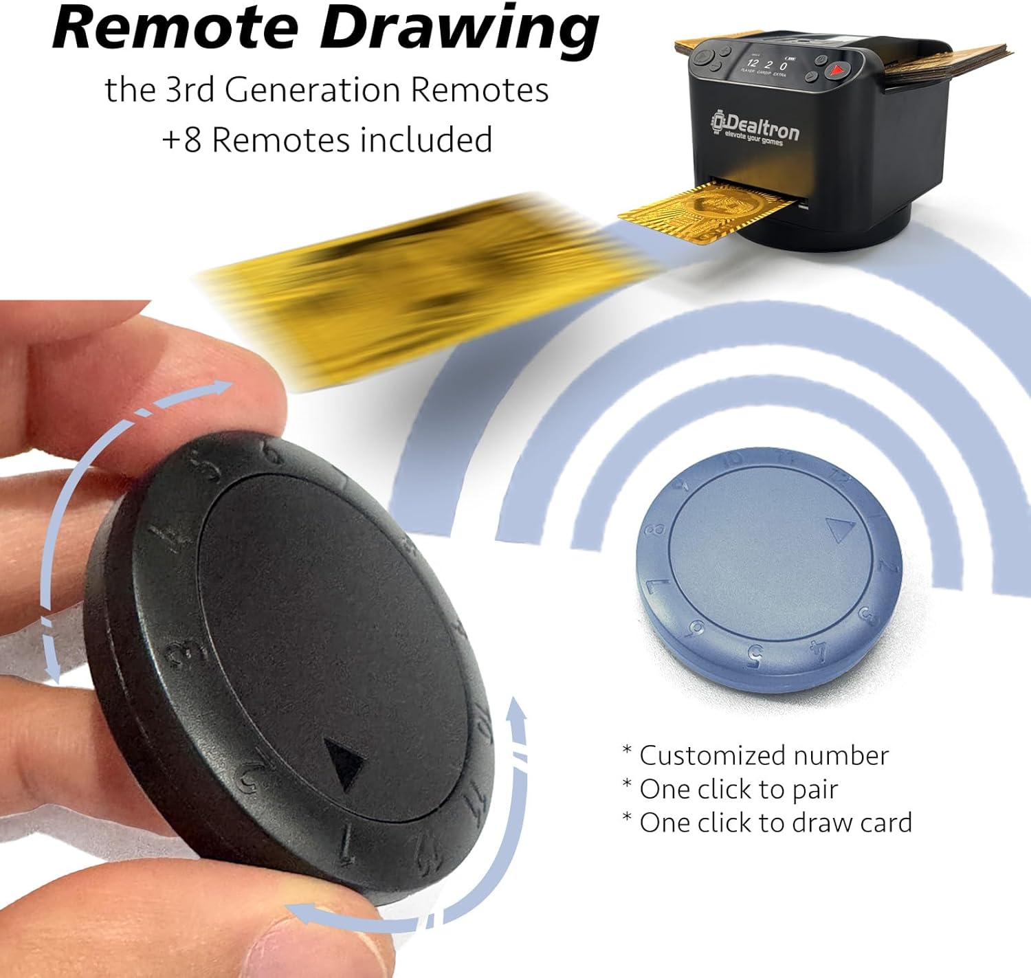 - 8 Wireless Remotes: Comes with 8 remotes for easy in-game card drawing. Each remote is paired to a specific position, so players can draw cards with just a click, enhancing the gameplay experience