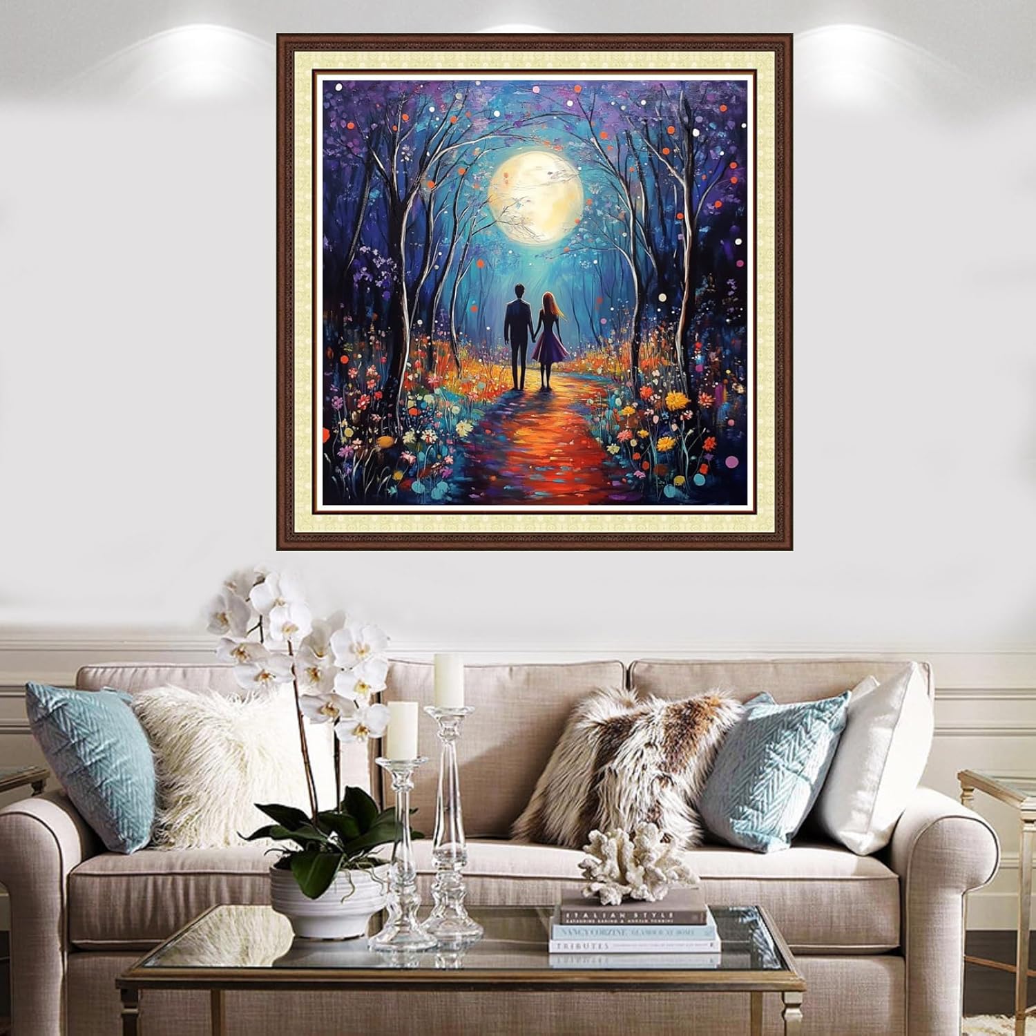 Findvoor Counted Cross Stitch Kits for Adults Full Range of Cross Stitching Embroidery Unprinted Pattern for Beginners, 11CT Needlepoint Kit Patterns Embroidery Kits-Couple Under Moonlight 18x18 inch