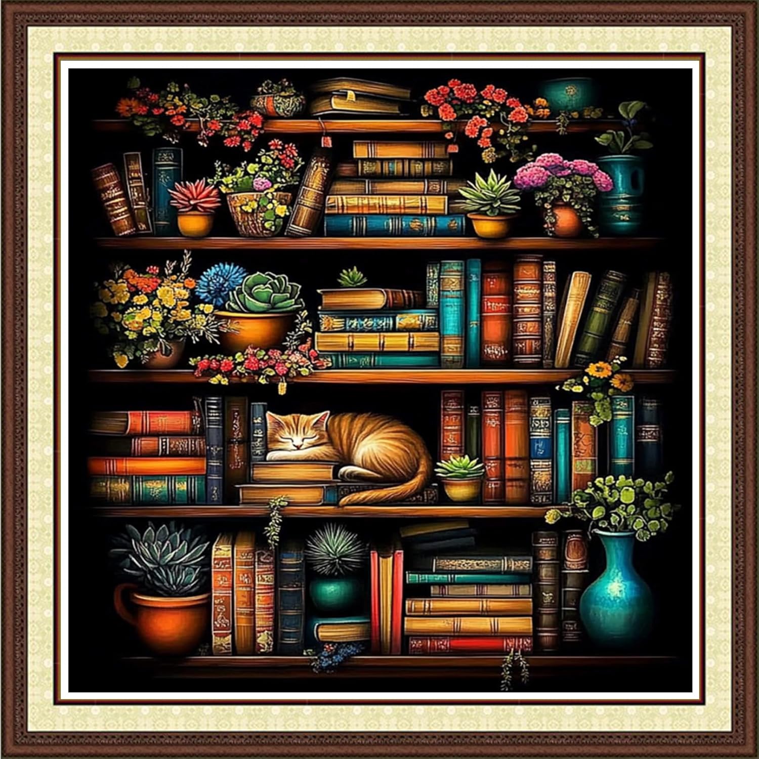 Findvoor Counted Cross Stitch Kits for Adults Full Range of Cross Stitching Embroidery Unprinted Pattern for Beginners, 11CT Needlepoint Kit Patterns Embroidery Kits-Bookshelf Cat 18x18 inch