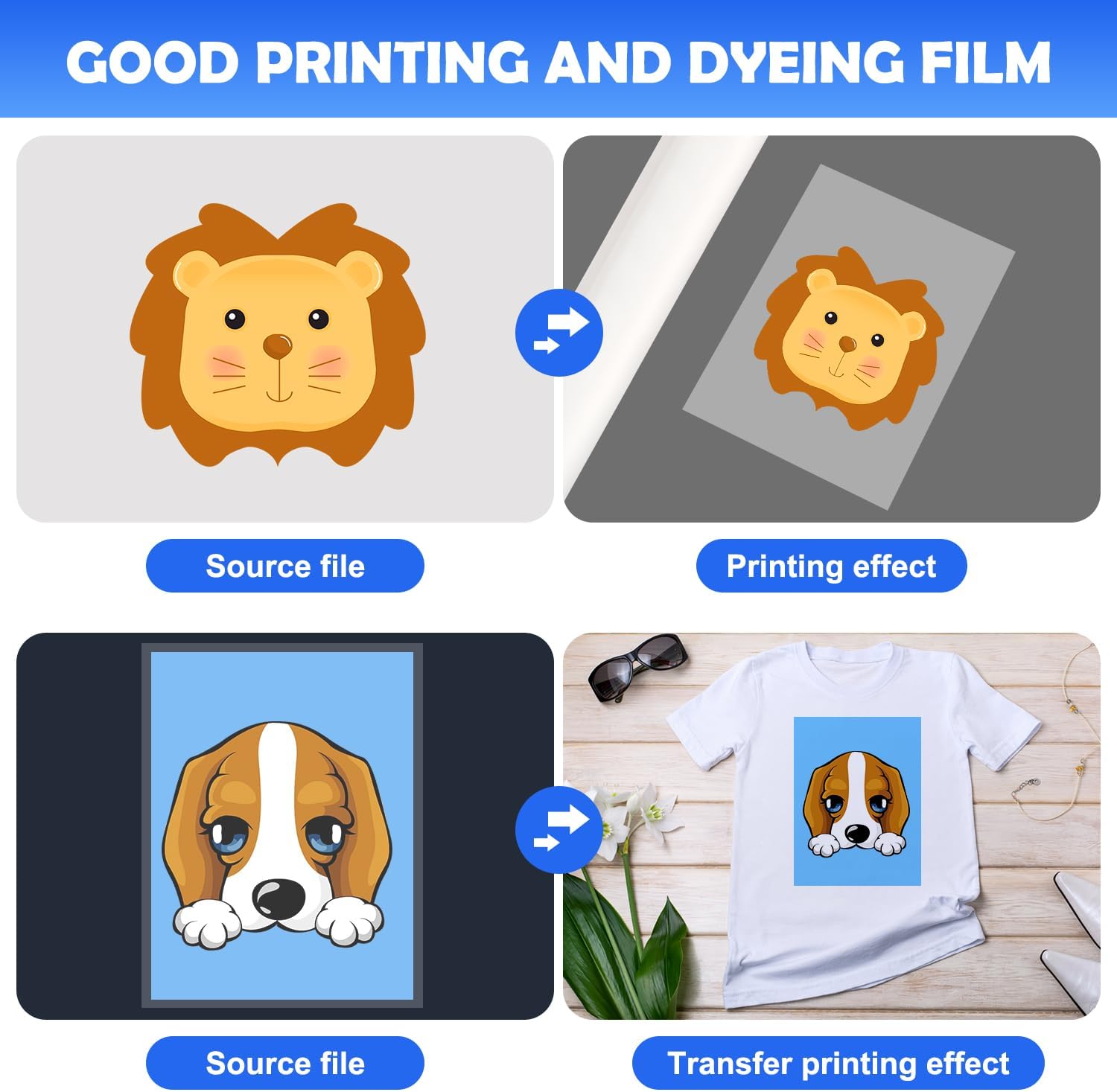 - Brighter Colors, Sharper Prints: Our premium DTF transfer film sheets (8.5" x 11") are through high-quality coating processes for strong ink absorption, resulting in vibrant, vivid colors and crystal-clear image quality. Trusted by creators and professionals alike for printing on all colors of garments, including dark, white, and bright fabrics
