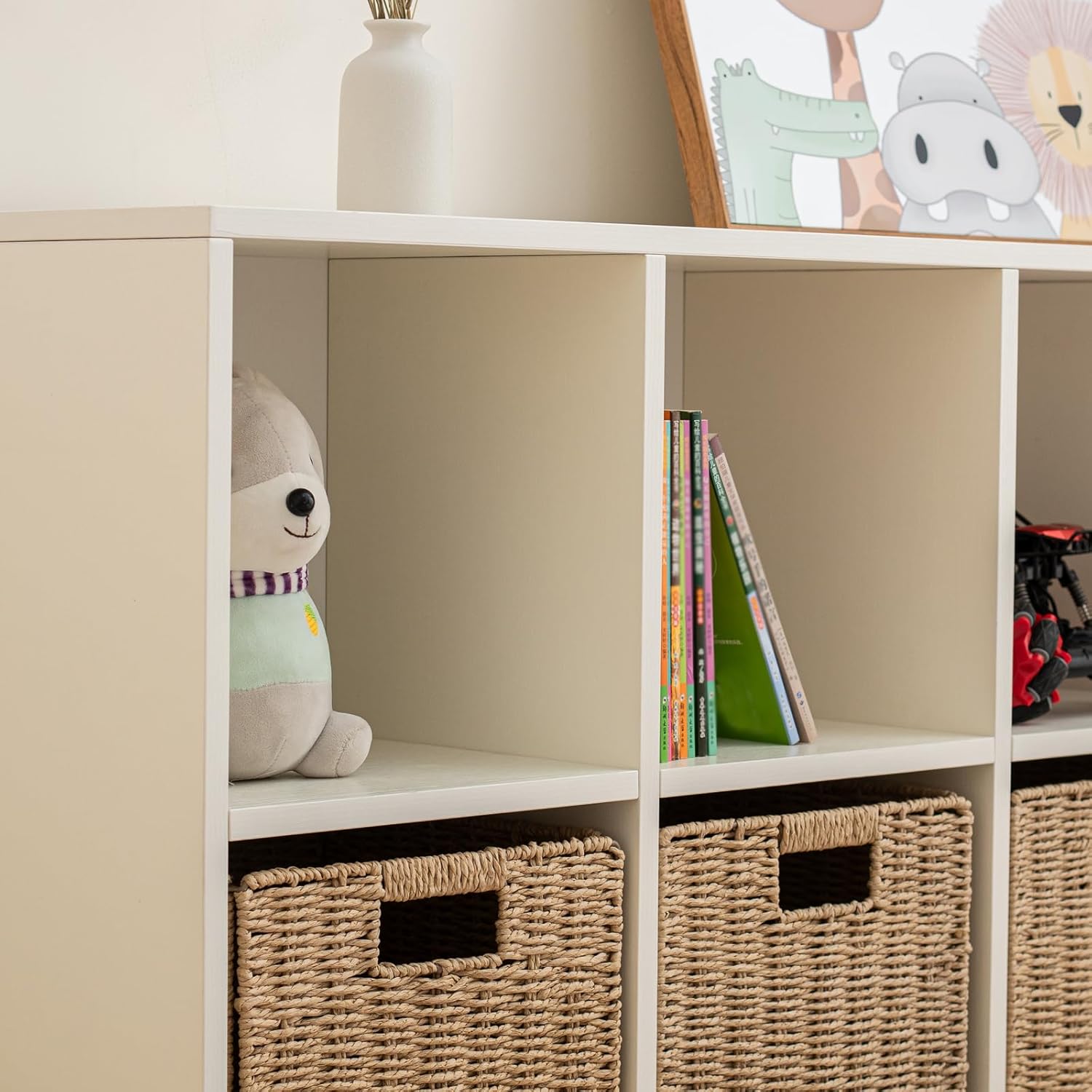 - 【Multi-functional Storage Solution】This eight compartment storage cabinet can be used as a bookshelf, entry way organizer, nursery storage unit or display shelf - the uniform cube size can accommodate baskets or individual decorative items.