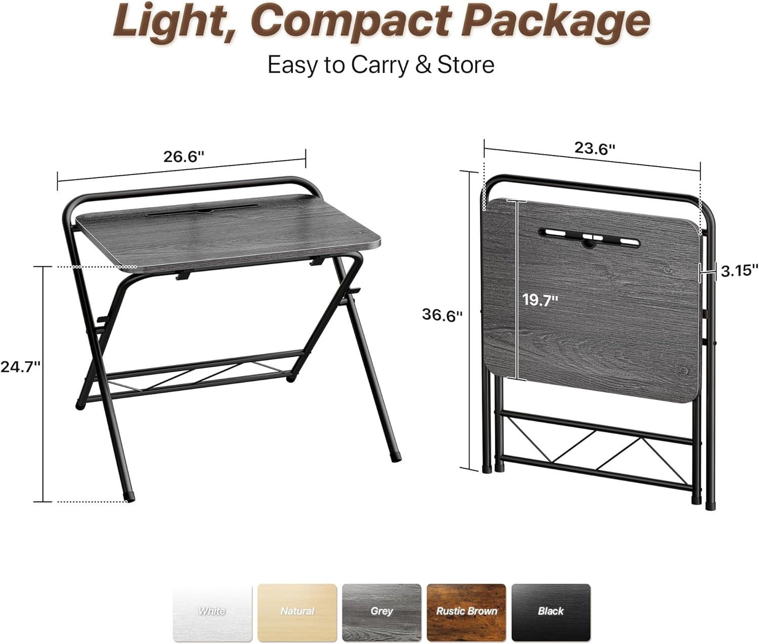 - 【Compact, Foldable & Space-Saving】Perfect for small spaces! Fold Size: 3.15'' X 26.6''X 36.6''. This lightweight foldable computer desk tucks neatly under beds, behind sofas, against walls, or in closets, small dorm. When you need more room, simply fold this office desk up and store it away. Ideal for maximizing your space