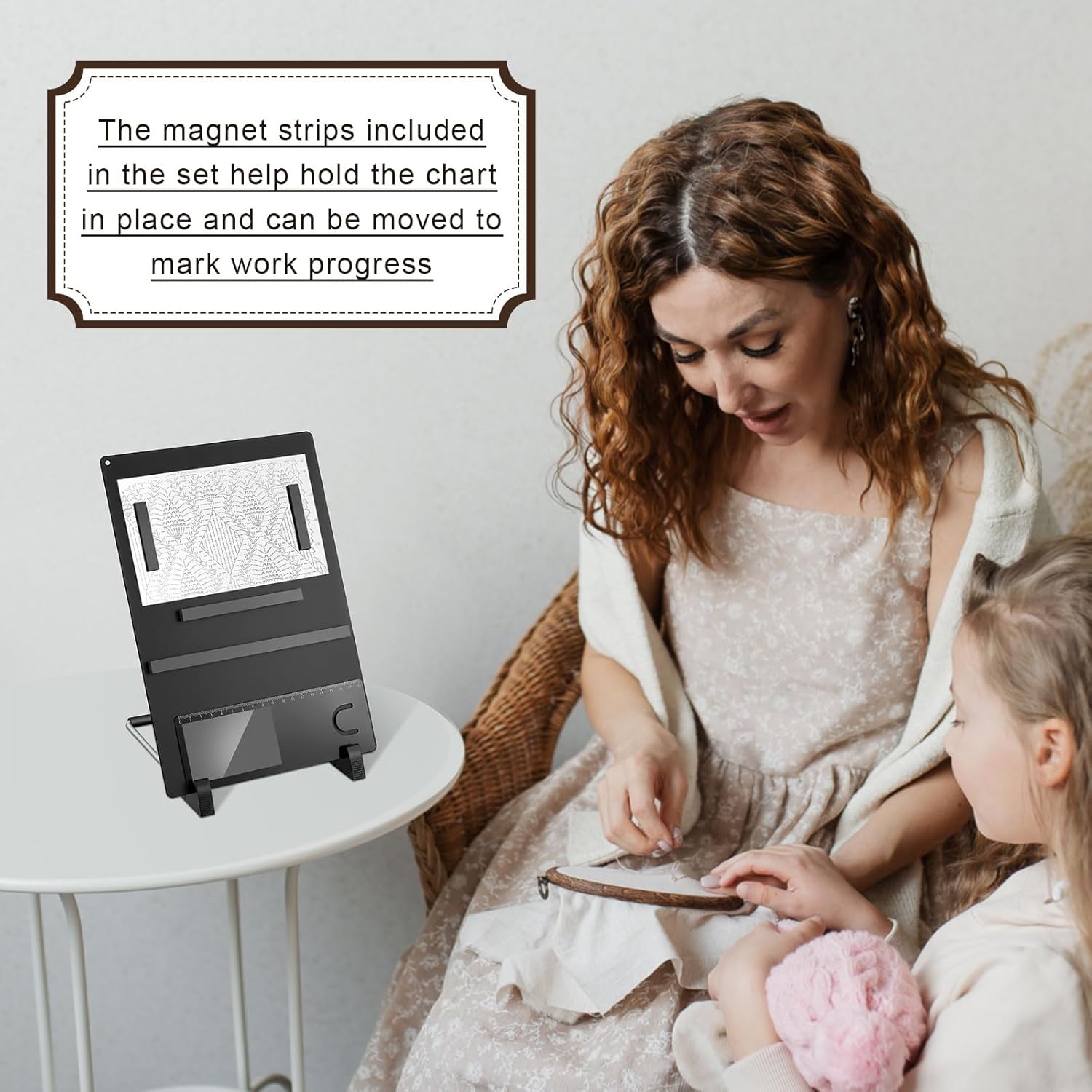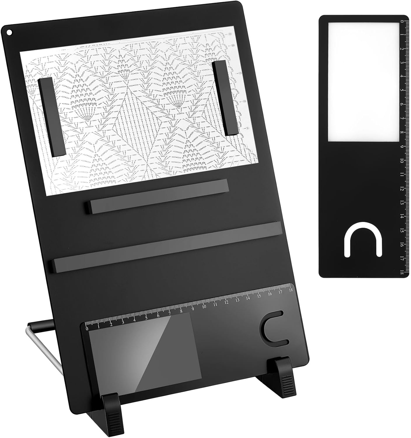 - Complete Set: the package includes 1 knitted metal magnet board with a size of 11.5 x 4.7 x 0.01 inch, 4 magnet strips in 3 sizes, 1 white bracket, 2 bookmark magnifiers with ruler, suitable for knitting, crocheting or cross stitching projects