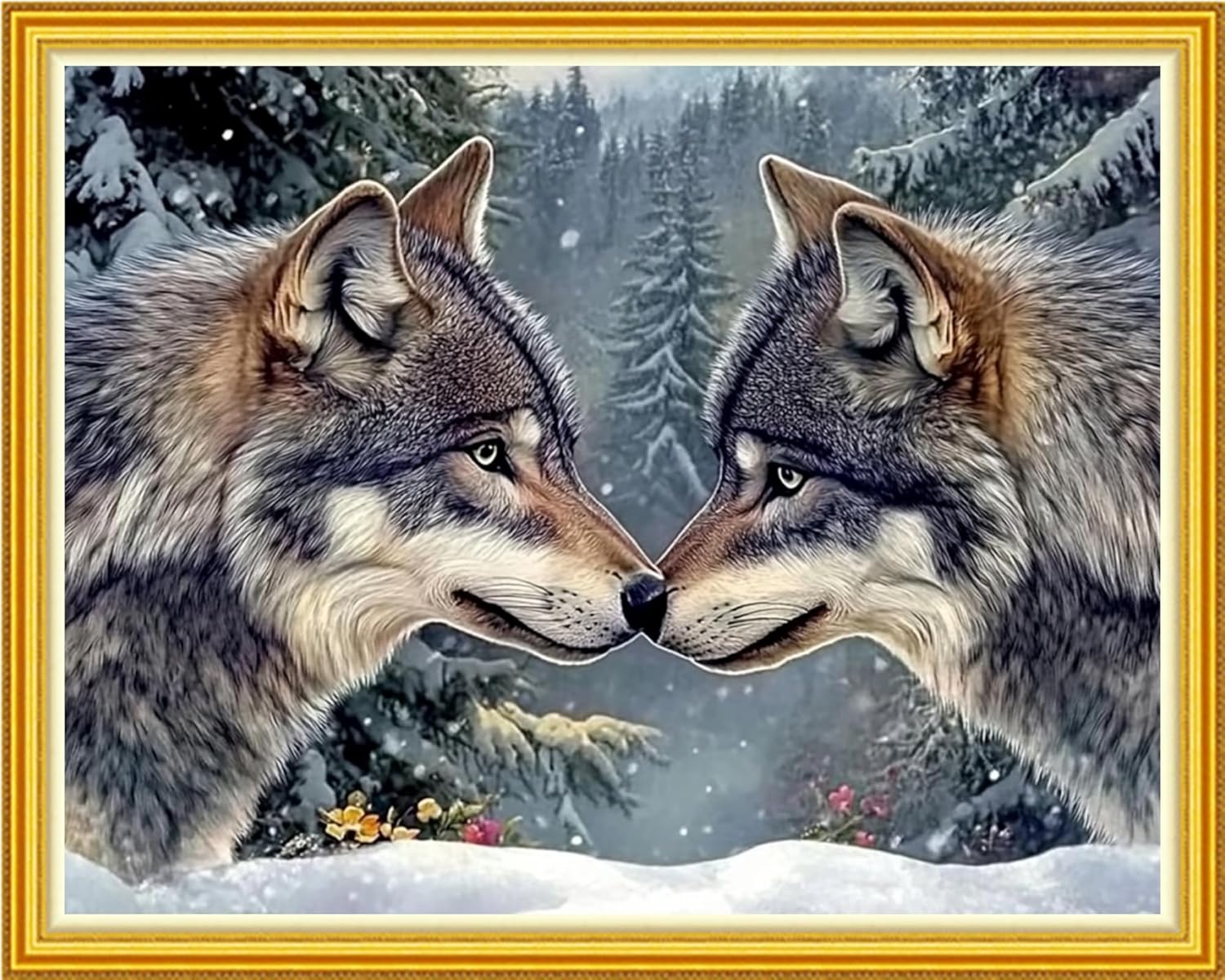 Hopeart Stamped Cross Stitch Kits for Beginner Embroidery Kits for Beginners Adults DIY 11CT Cross Stitch Patterns Needlepoint Kits Crossstitching Kits-Couple Wolf 16x20 inch
