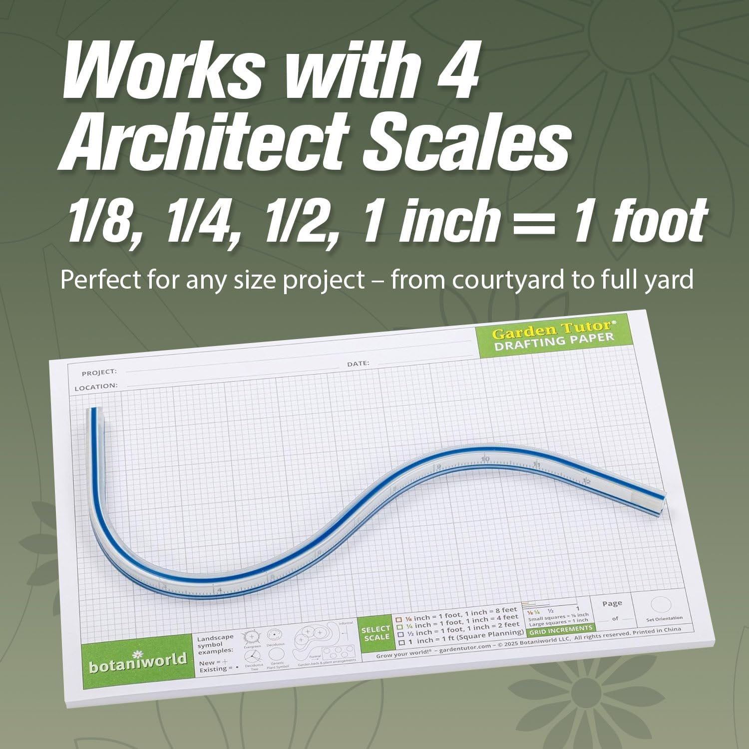 - All-in-One Garden & Landscape Planning: Includes two multi-scale design templates, a 12-inch flexible curve drafting ruler, custom landscape design graph paper, and an 8-page Garden Style & Design Guide—everything you need to plan and visualize your dream outdoor space.