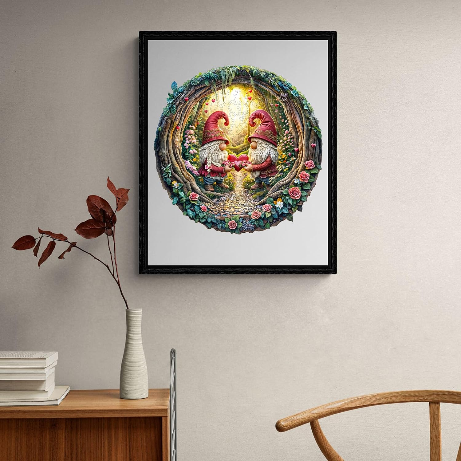 KAAYEE Wooden Puzzles for Adults, 3D Visual Effect Gnome Couple Wooden Jigsaw Puzzle Unique Shape Wood Puzzle Adult, 3D Effect Flat Puzzle Birthday Family Games (S-8.5 * 8.4in-100pcs)