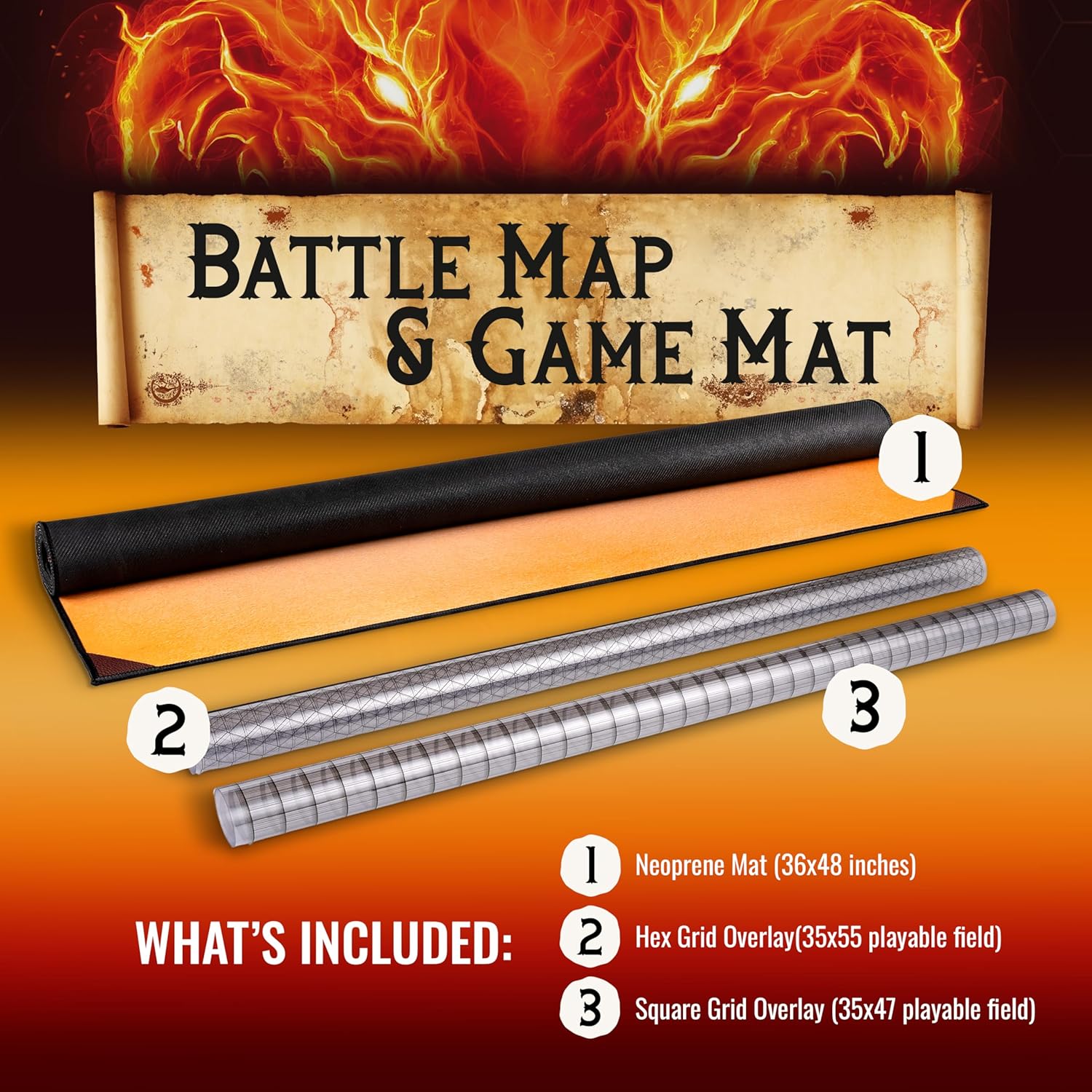 - 2-in-1 Battle Map & Game Mat: 3x4 Foot Rubber Non-Slip Game Mat rolls flat and stays flat so you can say goodbye to creases and wrinkles. Use for DnD sessions or Everyday Gaming