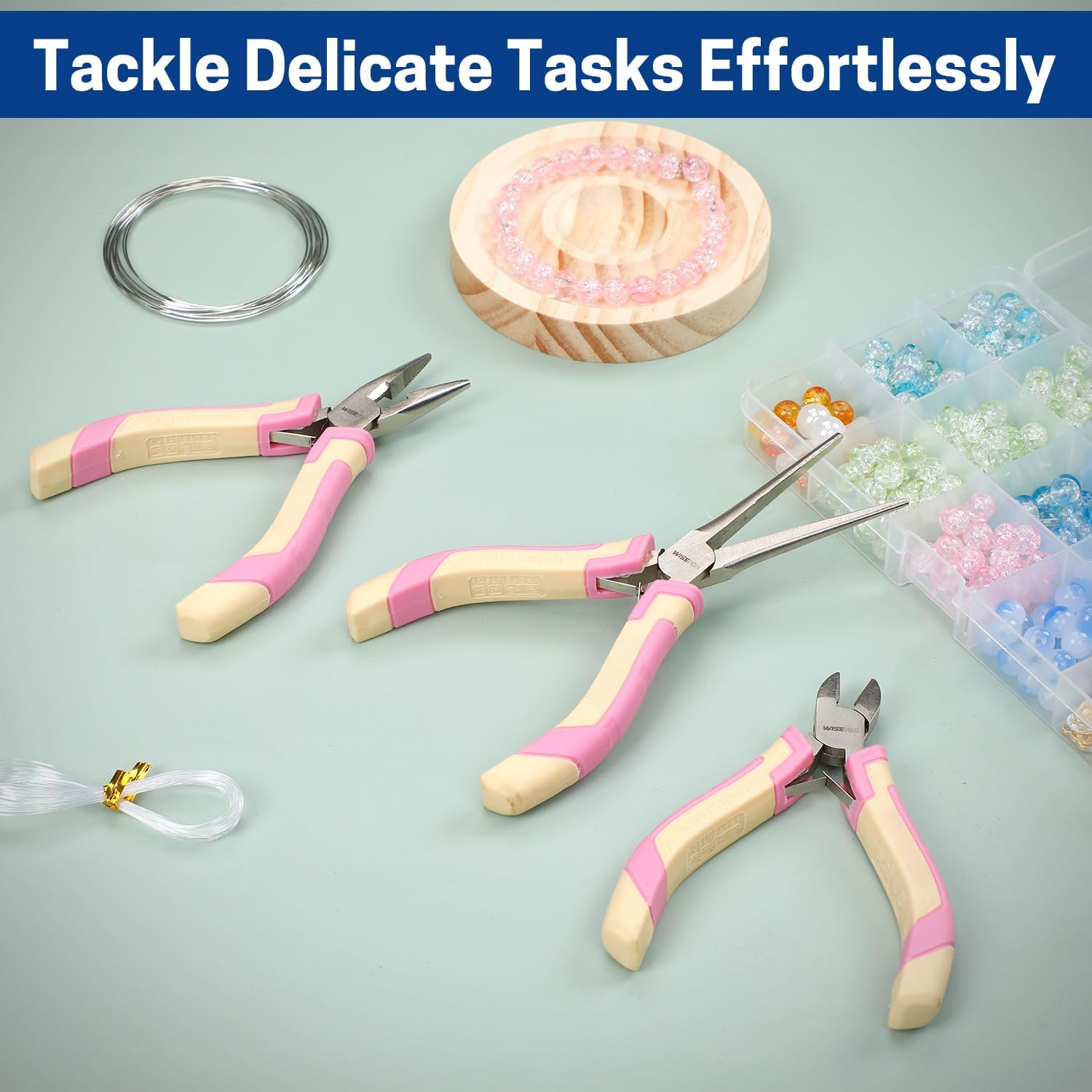 3 PCS Mini Pliers Set, Pink Jewelry Pliers Kit with Needle Nose, Diagonal and Long Nose, Small Plier Tool for Jewelry Making, DIY Crafts, Beading and Electronic Repair