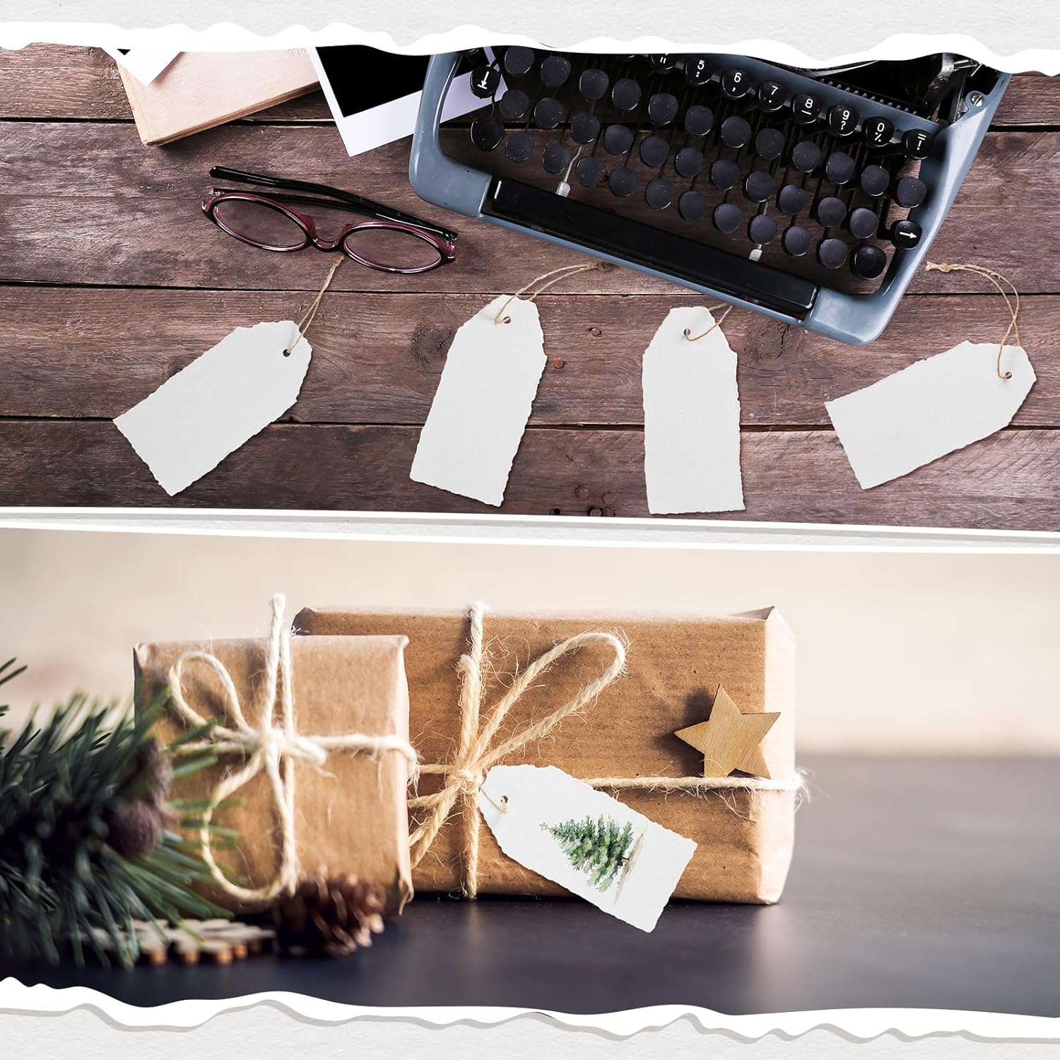 - Vintage Aesthetic Appeal: the charming white color of these deckled edge tags with attached string adds timeless elegance to any occasion; The distinctive deckle edge design effortlessly blends rustic charm with sophistication, making them ideal arts and crafts tags that elevate your projects
