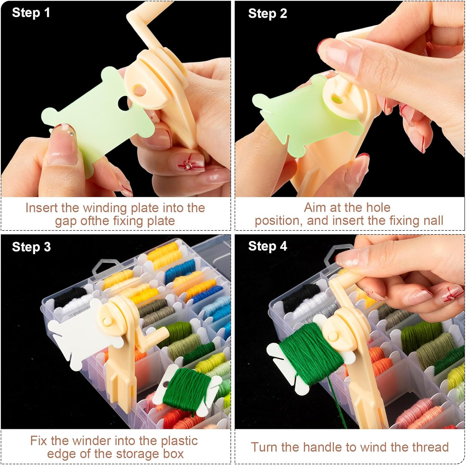 - Floss Bobbin Winder: bobbin winders for sewing is approximately 3.5 x 1 inches; Made of sturdy plastic, durable and not easy to break, bobbin winder can help you organize threads and embroidery floss in much time and effort saving way