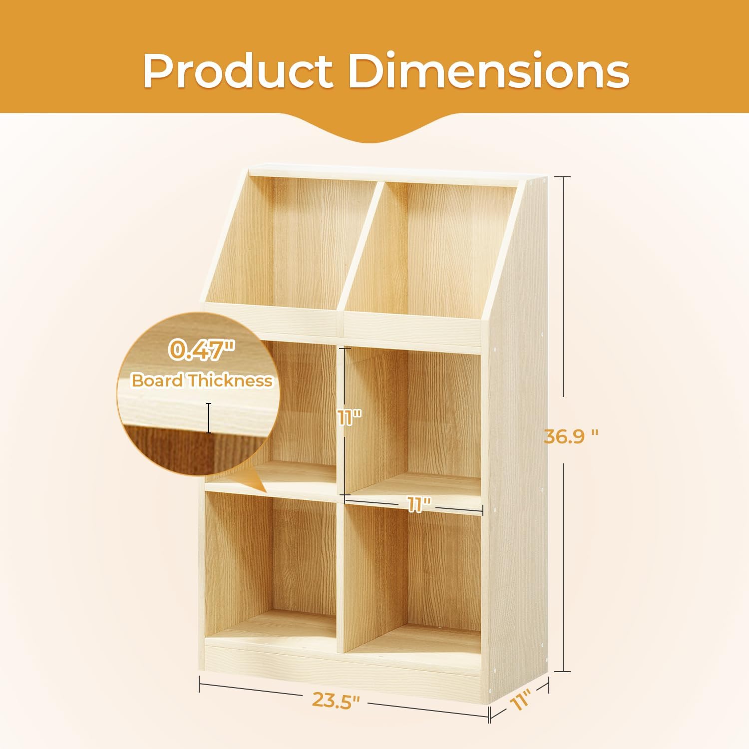 6-Cube Wooden Storage Bookcase - 11-Inch Open Shelf Cabinet, Simple Modern Bookshelf Organizer for Home Office, Living Room, Oak