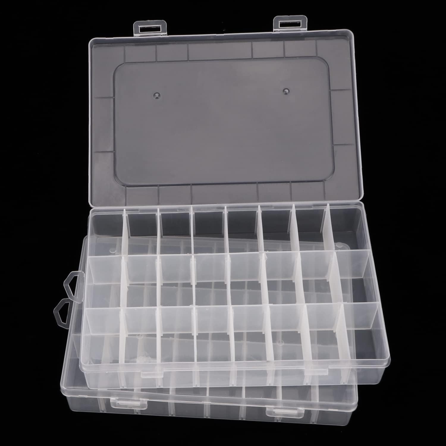 - 2 Pack 24 grids clear hard plastic box organizer, simple and practical. Used to put all your small items in one place without losing them. It's clear so you can easily see which items are stored in each organizer