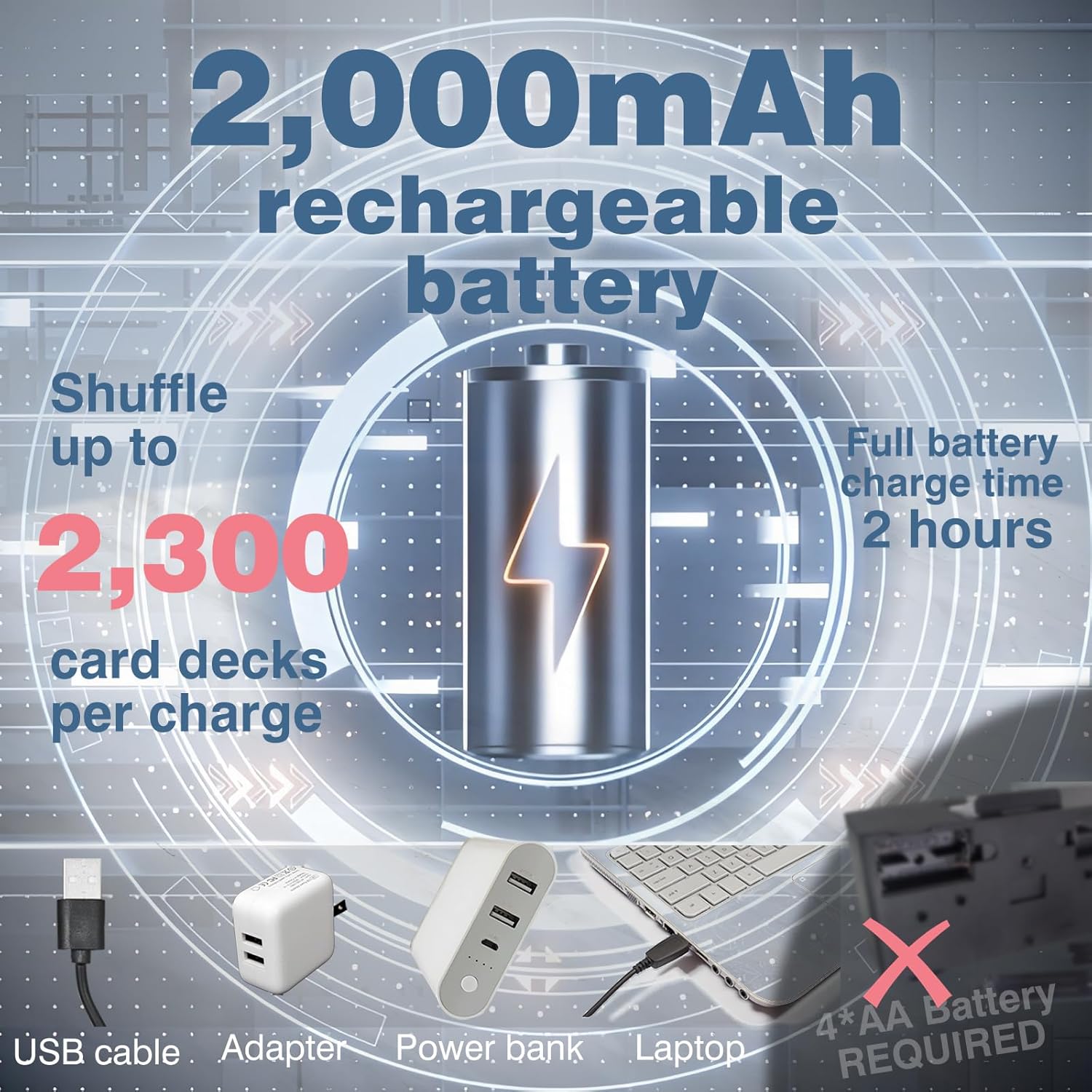 - [Fast Charging & High Capacity] -2000mAh rechargeable battery (USB-C) powers up to 2300 shuffles per charge; full recharge in about 2 hrs. Note: Not operational while charging