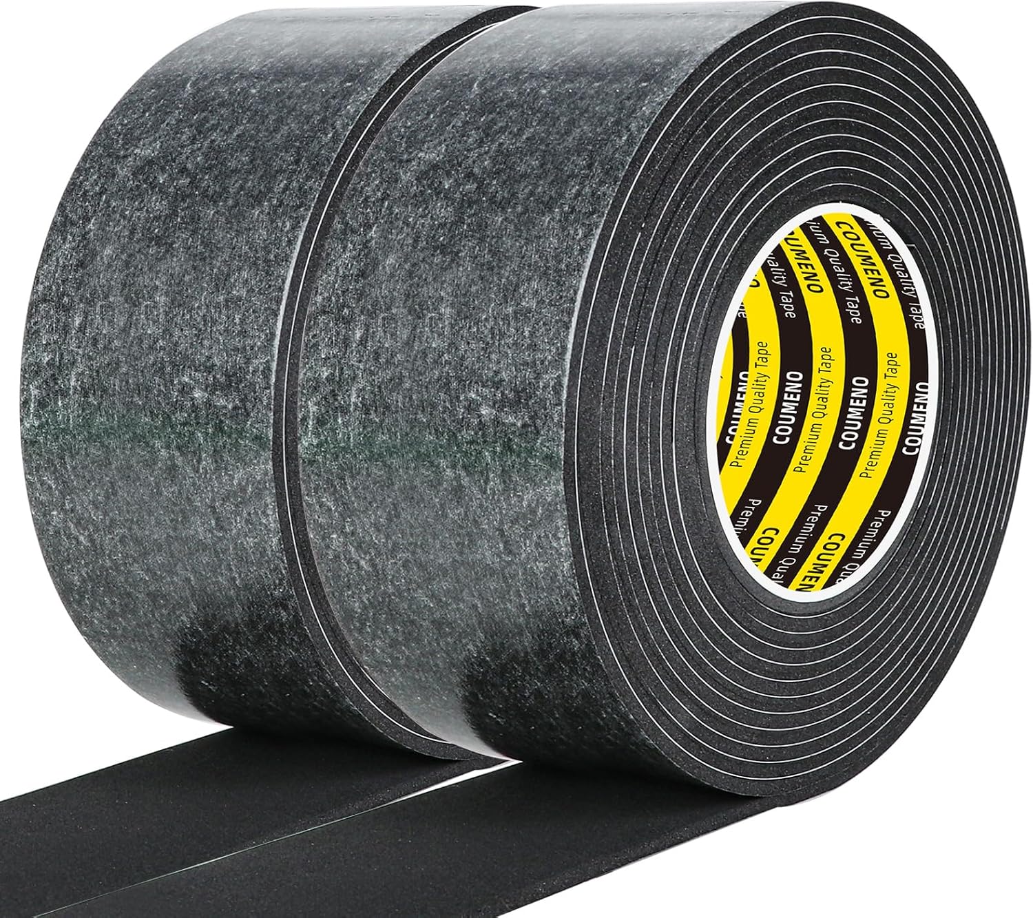 2 Pack EVA Single-Sided Adhesive Black Foam Tape,2inx16.4FT Single-Sided Sealing Strip Foam Pad Sponge Tape Window Weatherproof, Self-Adhesive Insulation Sealing Tape