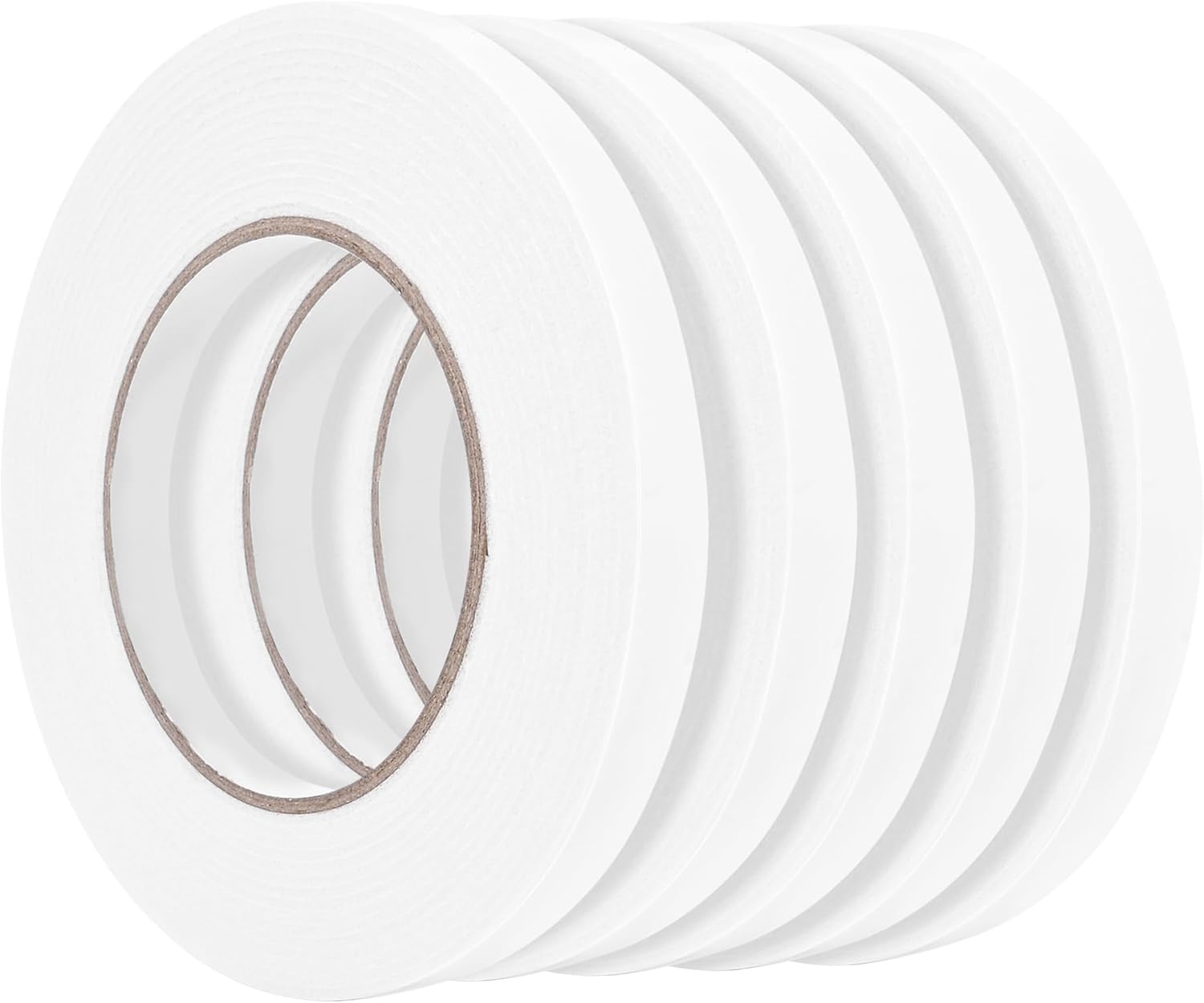 Double Sided Foam Tape 0.39In x 16.5FT 5 Pack, Mounting Tape Heavy Duty, Strong Adhesive Weatherproof Seal Strips for DIY Craft Picture Poster, Car & Gap Filling Mountings, Home Office Decor (White)