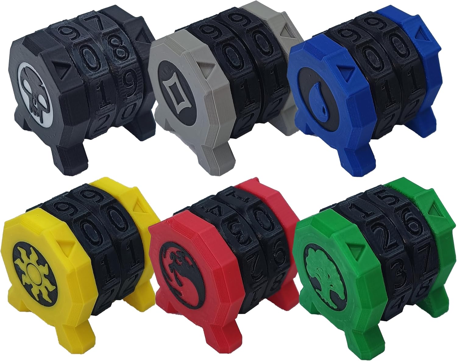 6PCS MTG Life Counter Set, 6 Terrain Types, 1.3 inch Gaming Tokens, Multi-Color