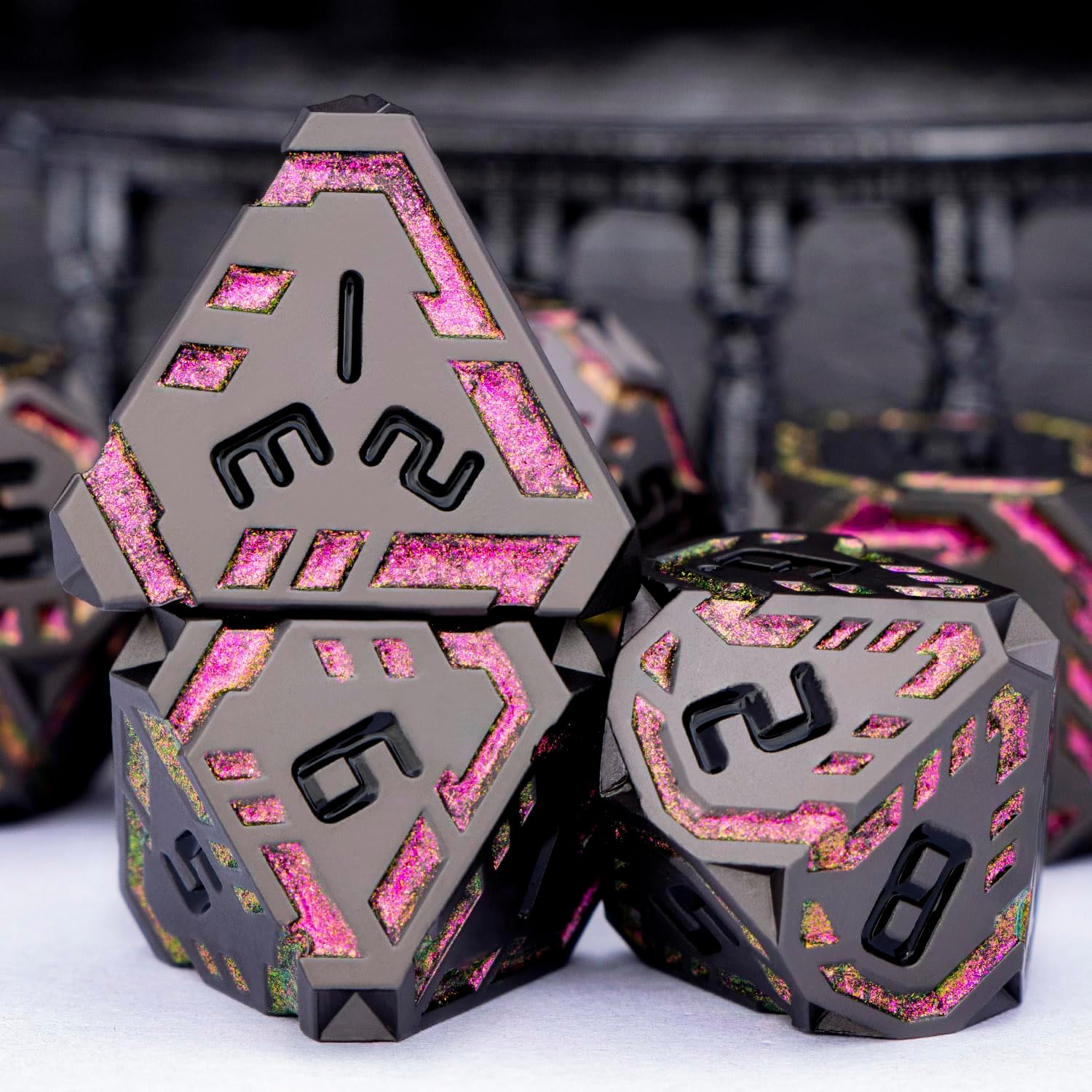 - Science Fiction Style : Designed with a future-tech theme, the dnd dice feature surface-etched stripes symbolizing pulsing energy streams of tomorrow. These dynamic lines traverse the facets, creating a unique ultra-modern, high-tech aesthetic.
