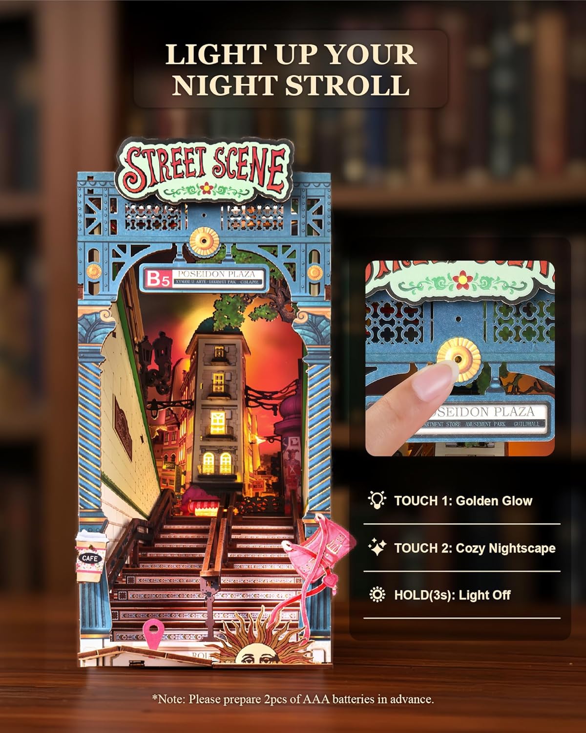 Rolife DIY Book Nook Kits for Adults, Miniature Dollhouse Booknook Kit, 3D Wooden Puzzle Creative Decorative Bookends Bookshelf Diorama Insert Crafts Hobbies Gifts (Street Scene)