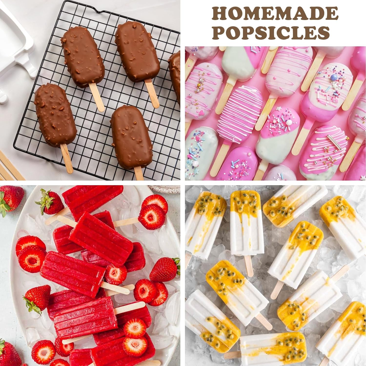 - WIDE APPLICATION: Wooden sticks not only for homemade ice cream, cakesicles and all kinds of popsicle type desserts; They can also used as to plant marker, wax applicators, treat sticks, tongue depressors, mixing sticks, DIY creative model and Sakolla 4 Cavities Oval Popsicle Molds