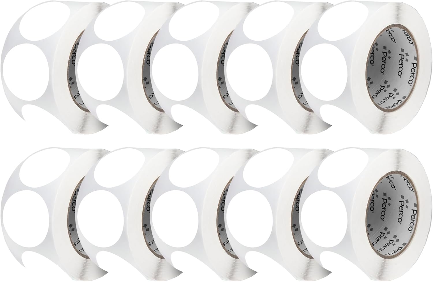Perco White 3-Inch Perforated Circle Dot Sticker Labels — 10 Rolls, 5,000 Round Stickers — with Permanent Adhesive for Moving Boxes, Sale Signage, Displays, Status Messaging—Made in USA
