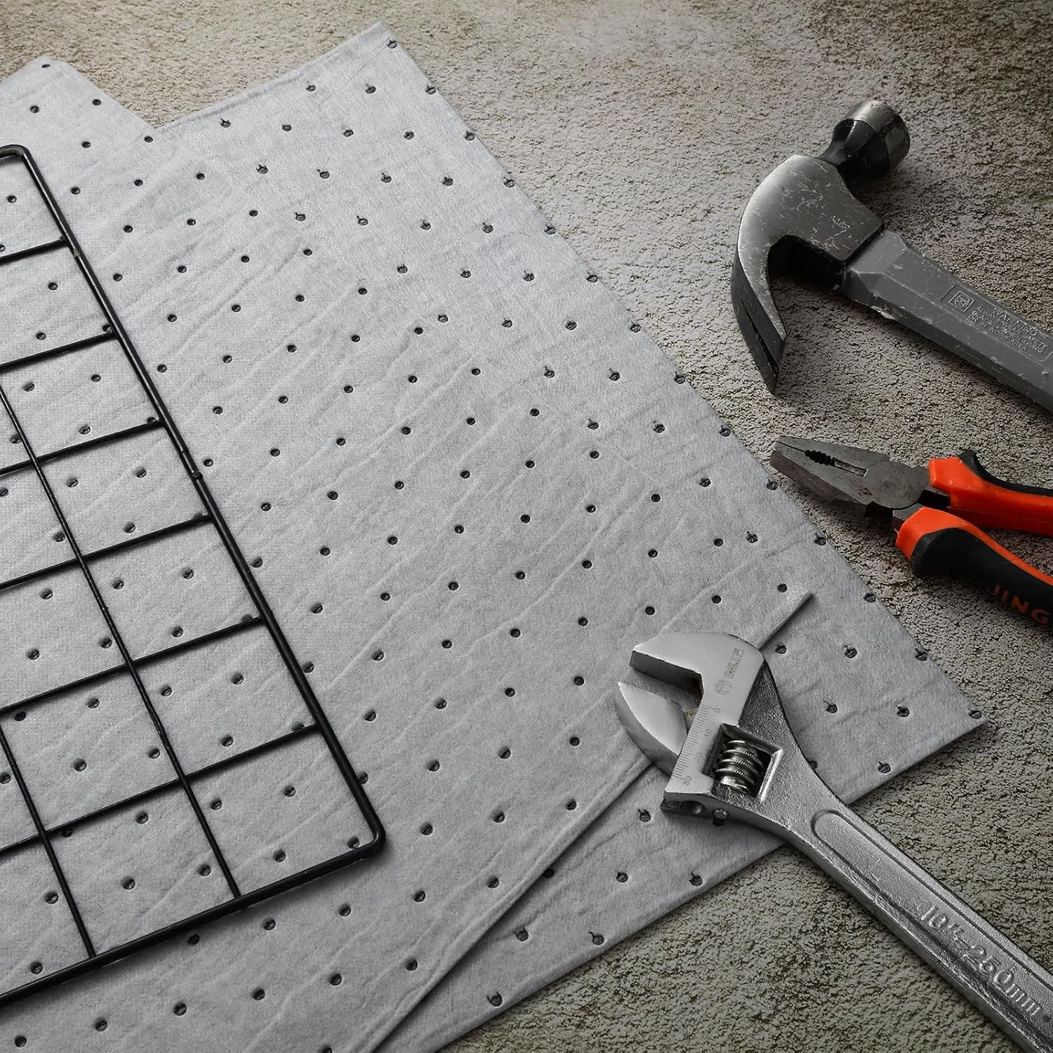 Hoolerry Oil Absorbent Pads Weight Dimpled Pad Garage Accessories Water Absorbent Mat Oil Spill Mat for Absorbing Protecting Home Garage Basement(15 x 19.7 Inch,Gray,200 Pcs)