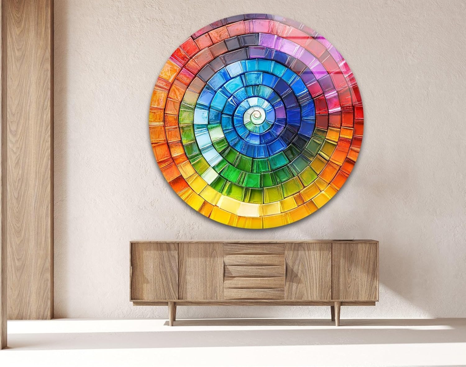 My Photostation.com 31.5''(80cm) Diameter Radiant Spiral Spectrum Round Glass Wall Art Tempered Glass Printing Wall Decor Large Wall Art Wall Hangings