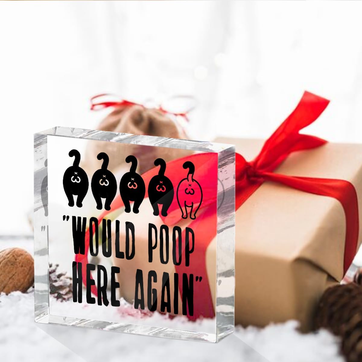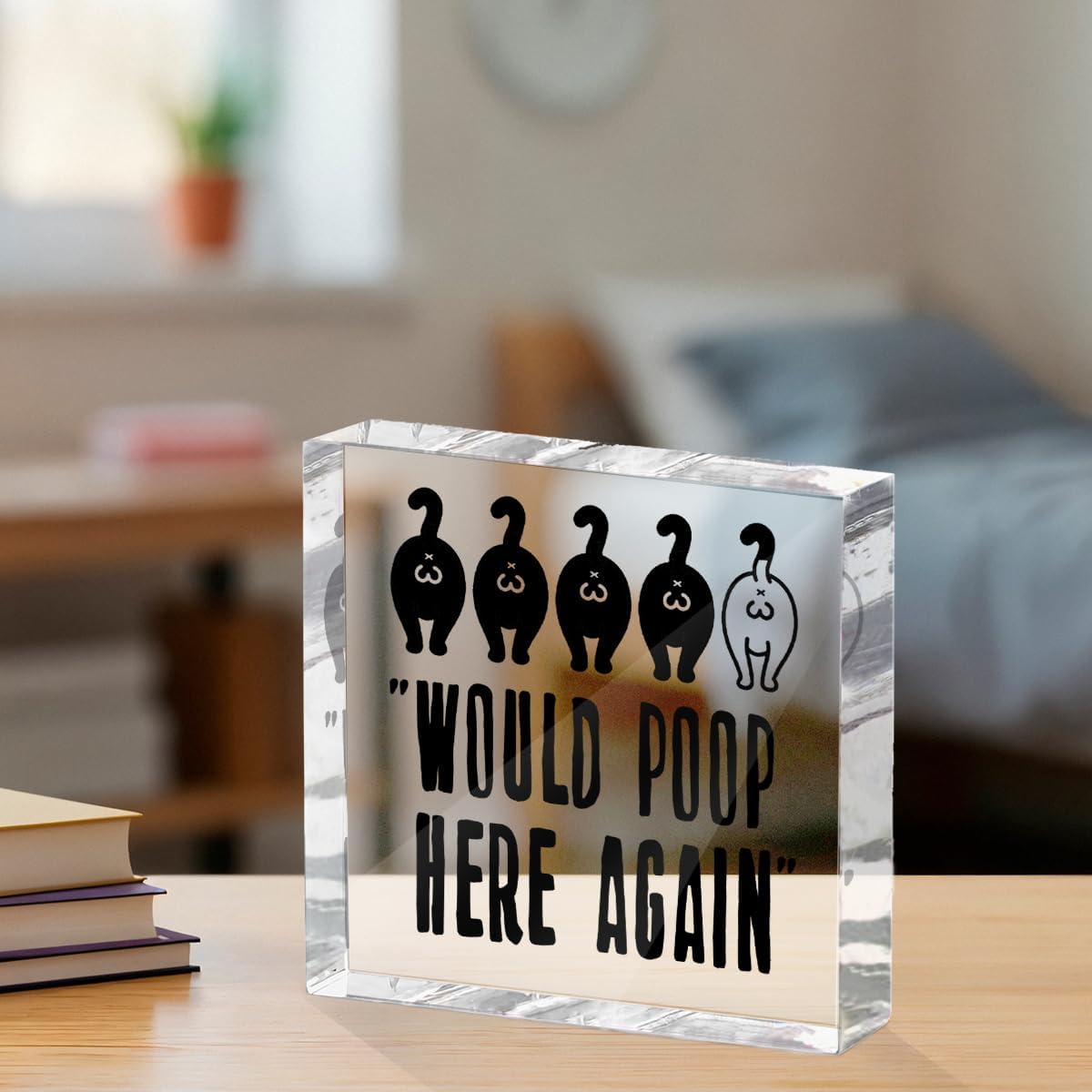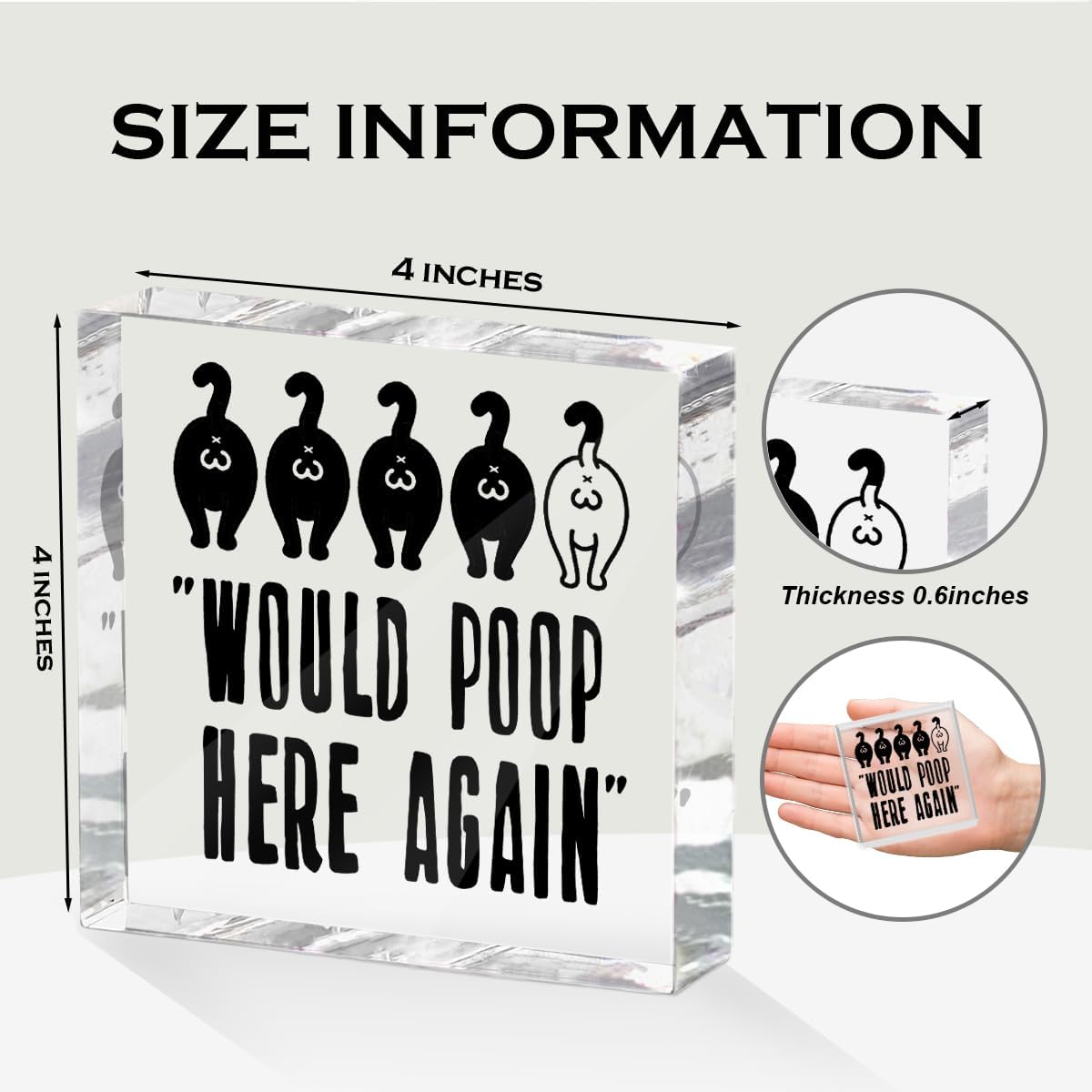 Funny Cat Bathroom Decor Acrylic Decorative Signs 4X4 Inch, Humorous Decorations for Bathroom Home Shelf Toilet, Cat Lover Gifts for Women Men Friends, Would Poop Here Again
