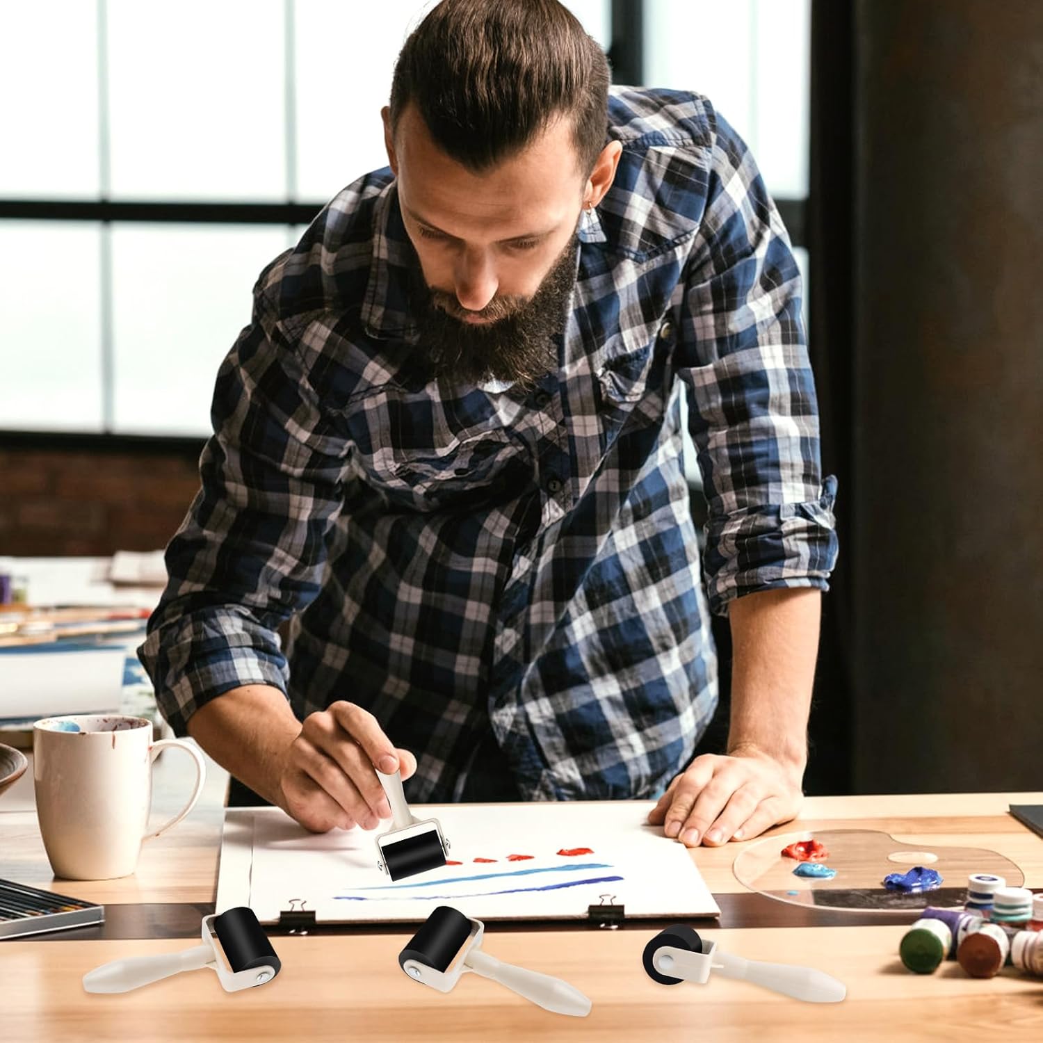 - 【Reliable Construction】 Made from high-density rubber and plastic materials, this brayer roller is built to last—resisting deformation, cracking, and wear over time. Its seamless design ensures no ink leakage or messy residue buildup, making it a reliable tool for long-term use.
