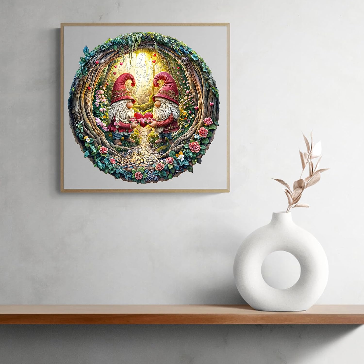 KAAYEE Wooden Puzzles for Adults, Gnome Couple Wooden Jigsaw Puzzle, 455 PCS Unique Shape Wood Puzzles Adult, 3D Visual Effect Flat Puzzle Birthday Family Games (XL-17.3 * 17.3in)