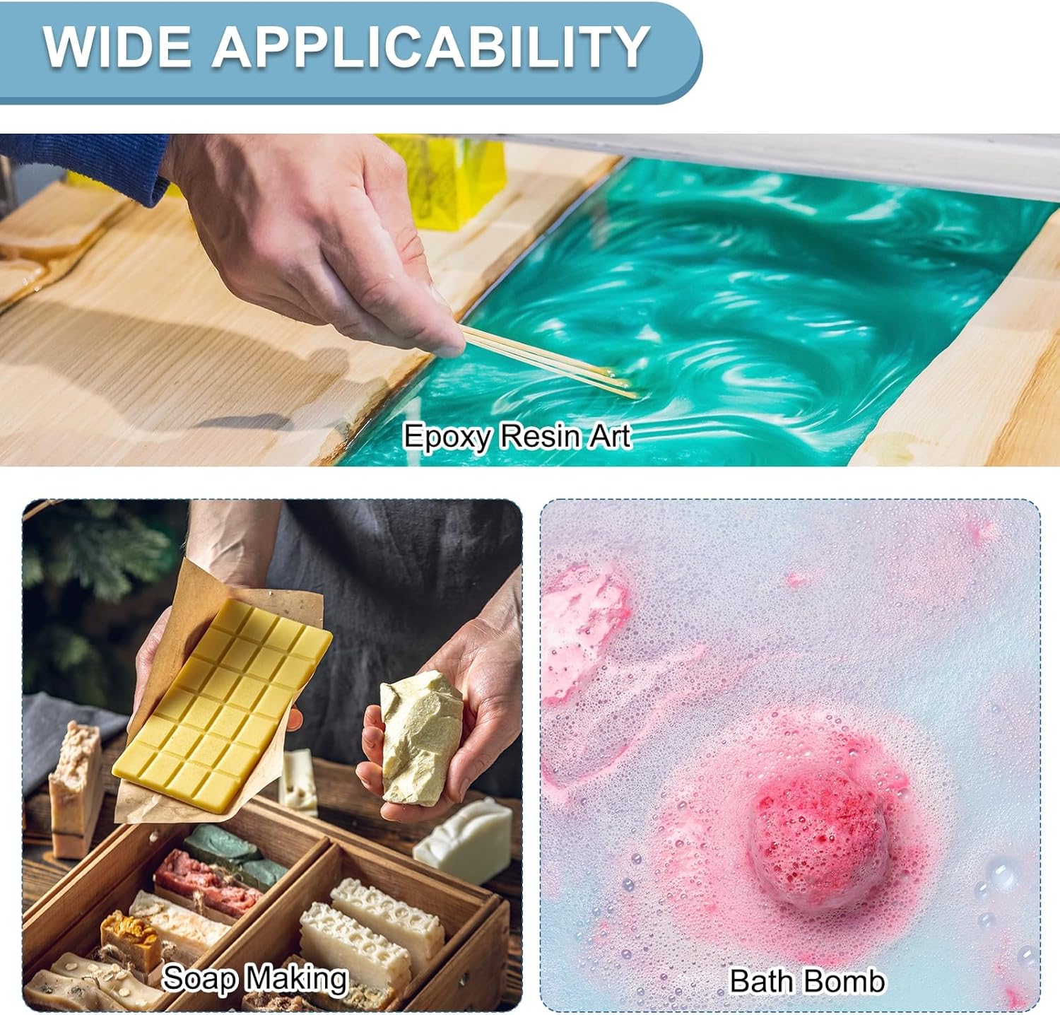 - Wide Application: Mica pigment powder perfect for multiple applications, including epoxy resin art, car paint, jewelry making, soap crafting, candle dye, nail chrome art, DIY makeup lip gloss pigment, and paper crafts. Create dazzling effects in river tables, coasters, keychains, and more