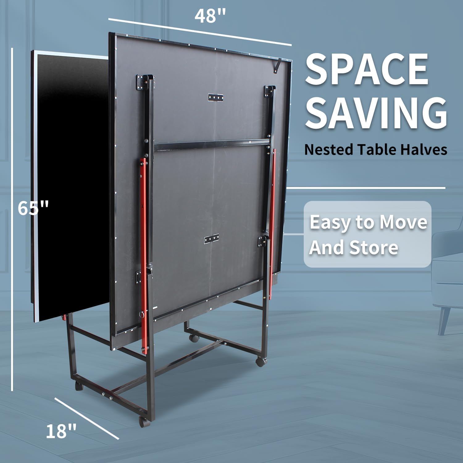 - 【Folding Table Tennis Table】Our Standard-Sized Table Tennis Table Is Easy To Unfold For Playing Or Fold For Storage. There Are Wheels At The Bottom, Which Can Be Locked, And Can Be Easily Moved And Fixed In The Storage Location Or On The Sports Field.