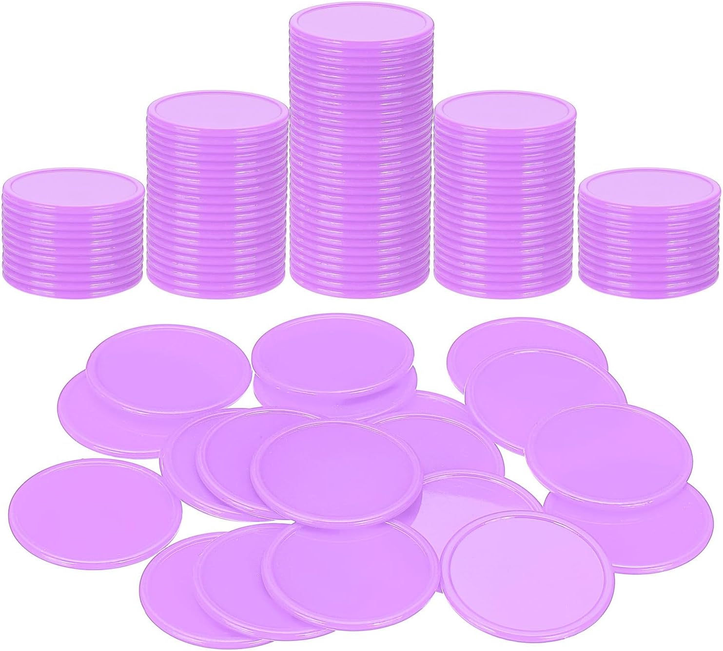 - Size & Packaging - The package contains 200 pcs of light purple plastic poker chips, measuring 1.46 inches (37mm) in diameter. The edge of each plastic chip is higher than the middle, and the surface is smooth, which makes it convenient for picking up.