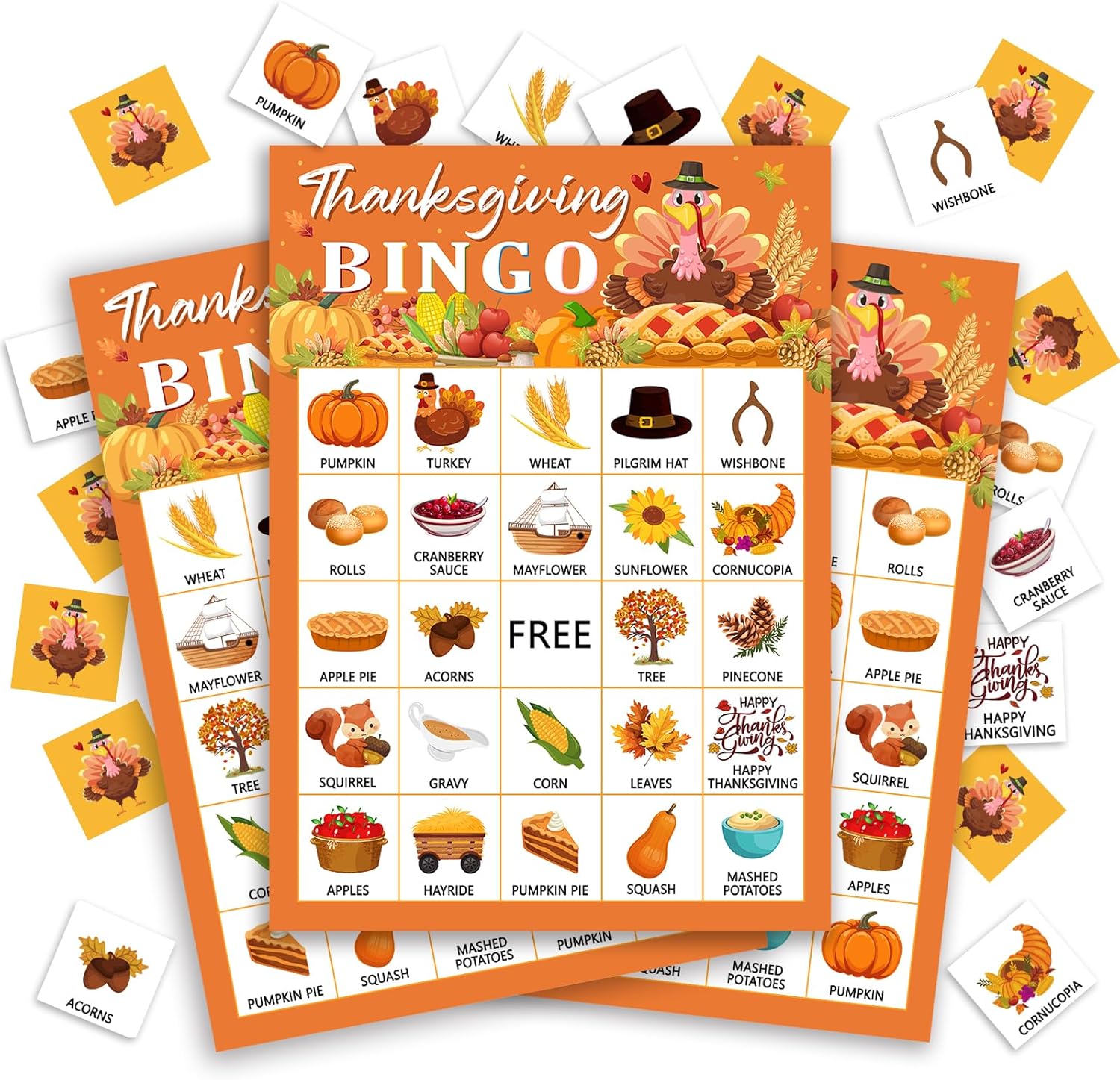 - Thanks-tacular Group Fun! Our Thanksgiving Bingo Cards are the ultimate icebreaker to bond friends & family this season. Level up your feasts, classroom activities, or neighborhood gatherings with this gratitude-filled game—packed with turkeys, pumpkins, and harvest designs that’ll make every round heartwarming!