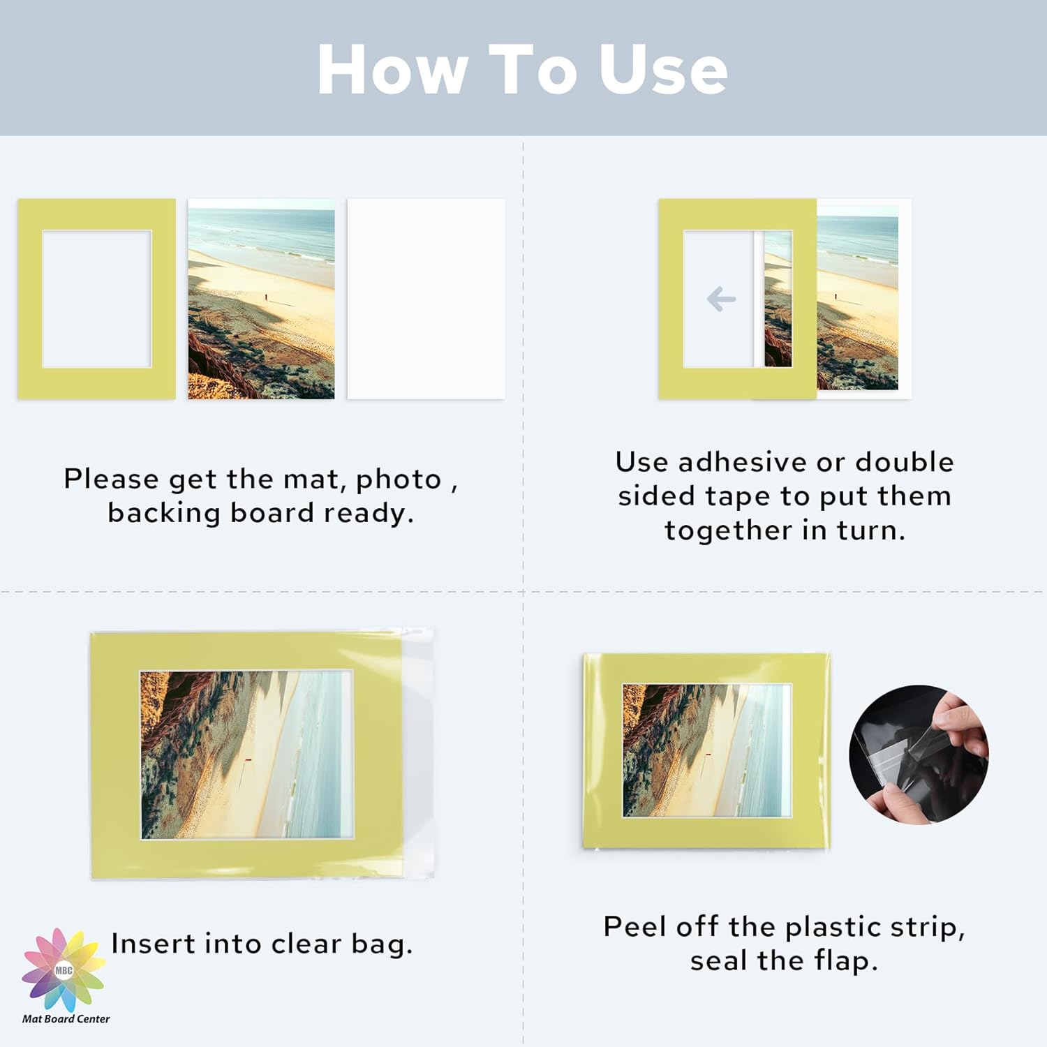 Mat Board Center, Pack of 10, 11x14 for 8x10 Mix Color Mat Kit - Acid Free, 4-ply Thickness, White Core - Includes Backing Boards and Clear Bags - for Pictures, Photos, Framing