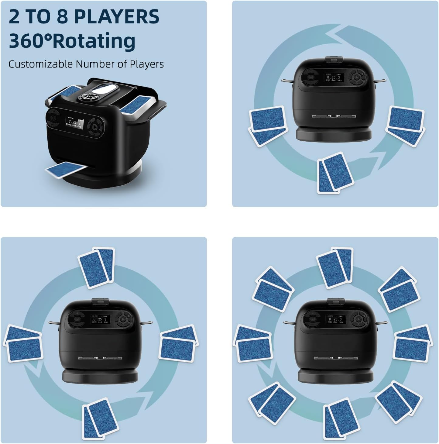 - 【HIGH-SPEED CARD DEALING 360° ROTATING】 Our Card Dealer Dual Rotating Wheels For 8 Players In 8 Directions,With Clockwise And Counterclockwise Dealing Options, This Card Dealer Machine 360 Allows For Versatile Dealing Styles.